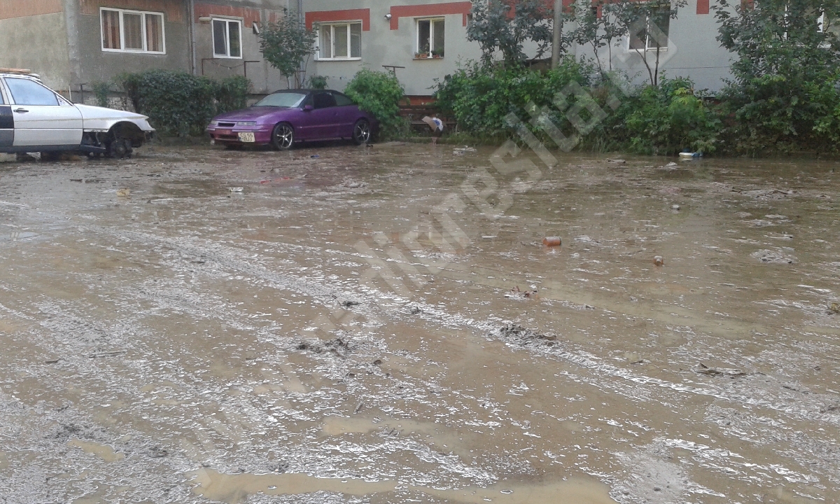 În urmă au rămas mâl, diverse deșeuri, un miros specific zonelor inundate, dar mai ales pagubele. Gospodării, sedii de firme, garaje, scări de bloc, toate sunt afectate de șuvoaiele care au pătruns peste tot. Canalizarea, colmatată înainte de ploaie nu a făcut față apei în exces.