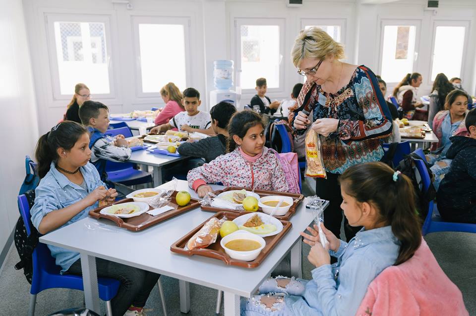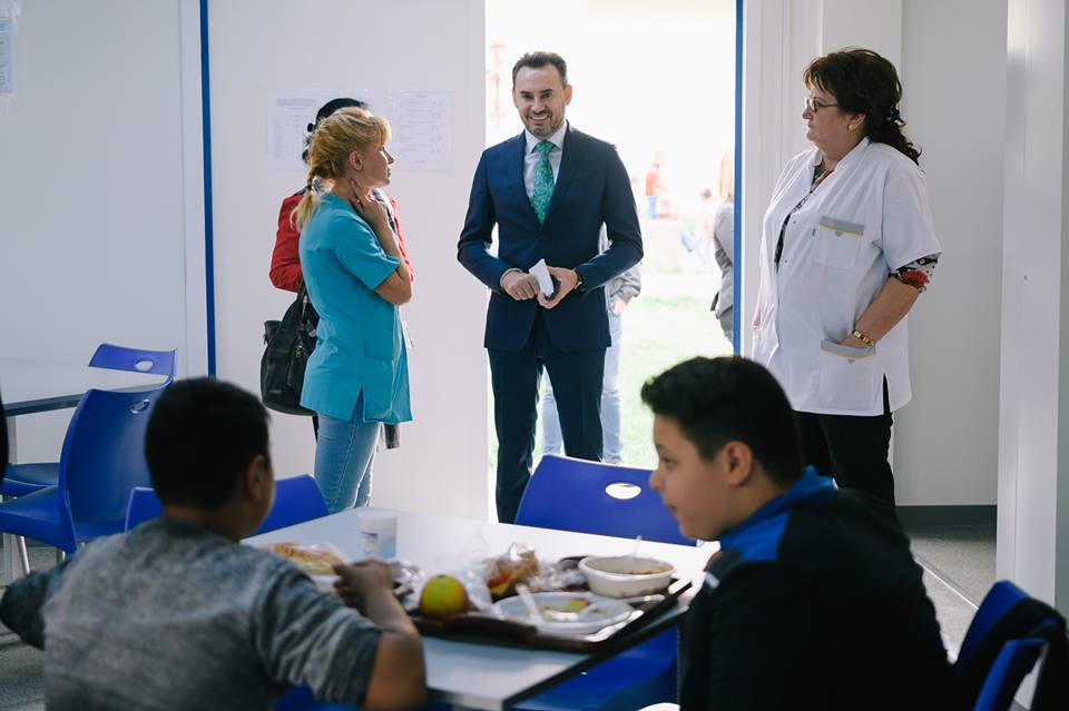 „În fiecare zi, la ora 10:45 aducem mâncarea proaspăt gătită la şcoală. La servirea mesei mă ajută o echipă formată din 5 oameni, astfel că cei mici nu au mult de aşteptat. Este atât de plăcut să vezi atât de mulţi copii fericiţi, încât cred că am întinerit 10 ani”, a declarat directorul Cantinei municipale, Mariana Szucs.