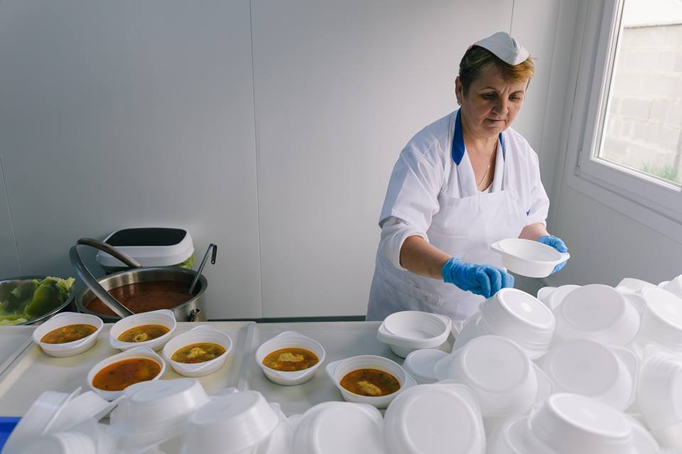 Mâncarea este pregătită şi servită de angajaţi ai Cantinei municipale.