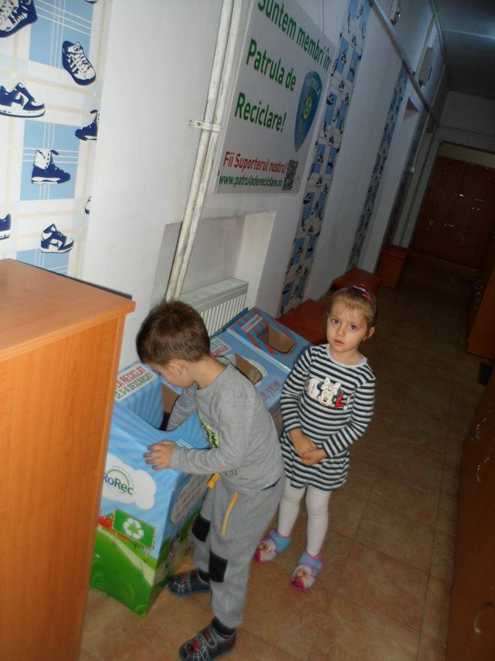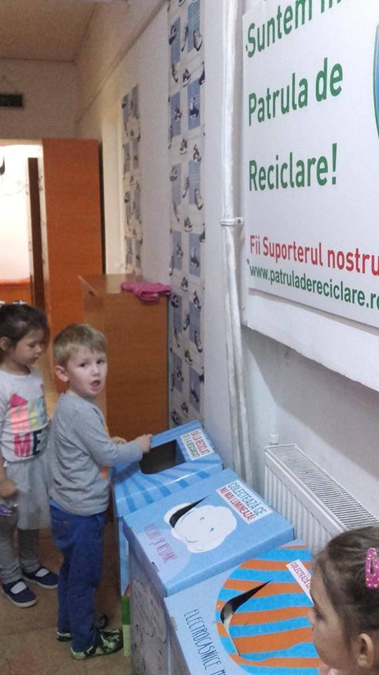 ,,Eu am adunat toate bateriile şi becurile stricate. Nu este voie să le aruncăm la gunoi. Dacă vine o pisică la gunoi şi înghite becul spart…..se îmbolnăvește”, explică plin de zel, Ştefan de la Grupa Mică, un membru foarte harnic al patrulei de Reciclare.
