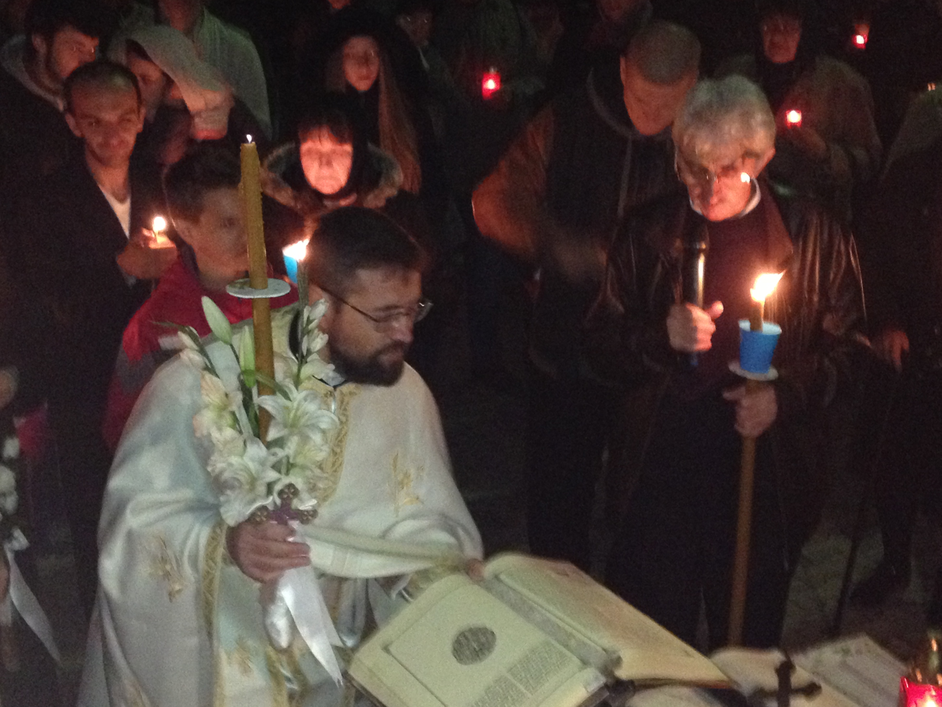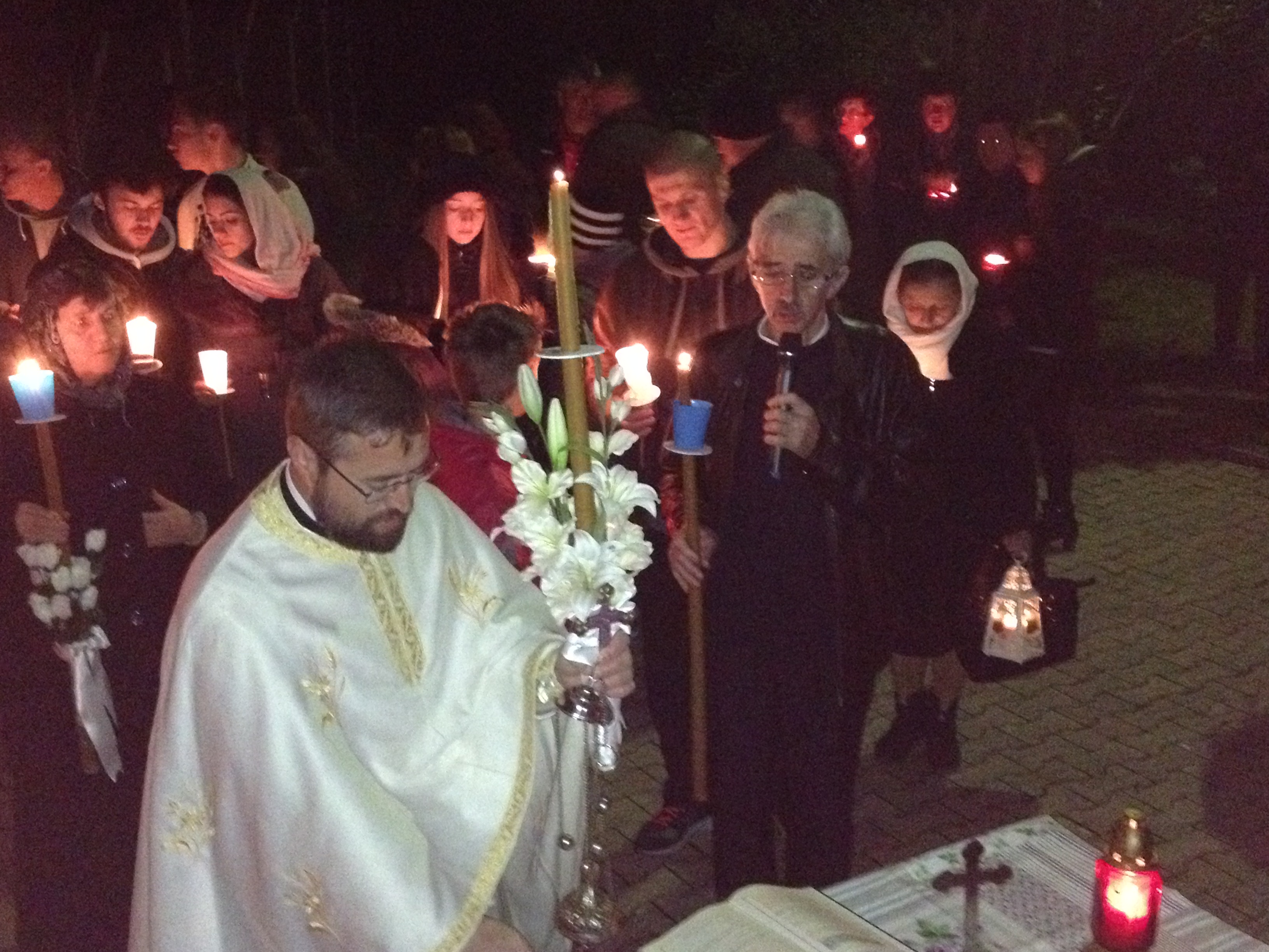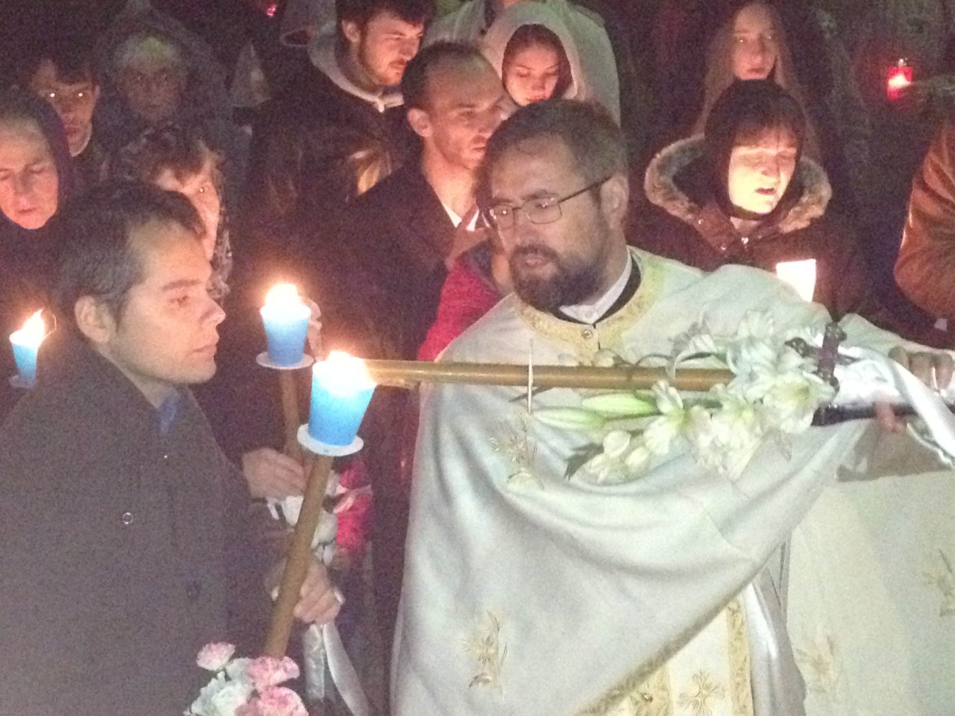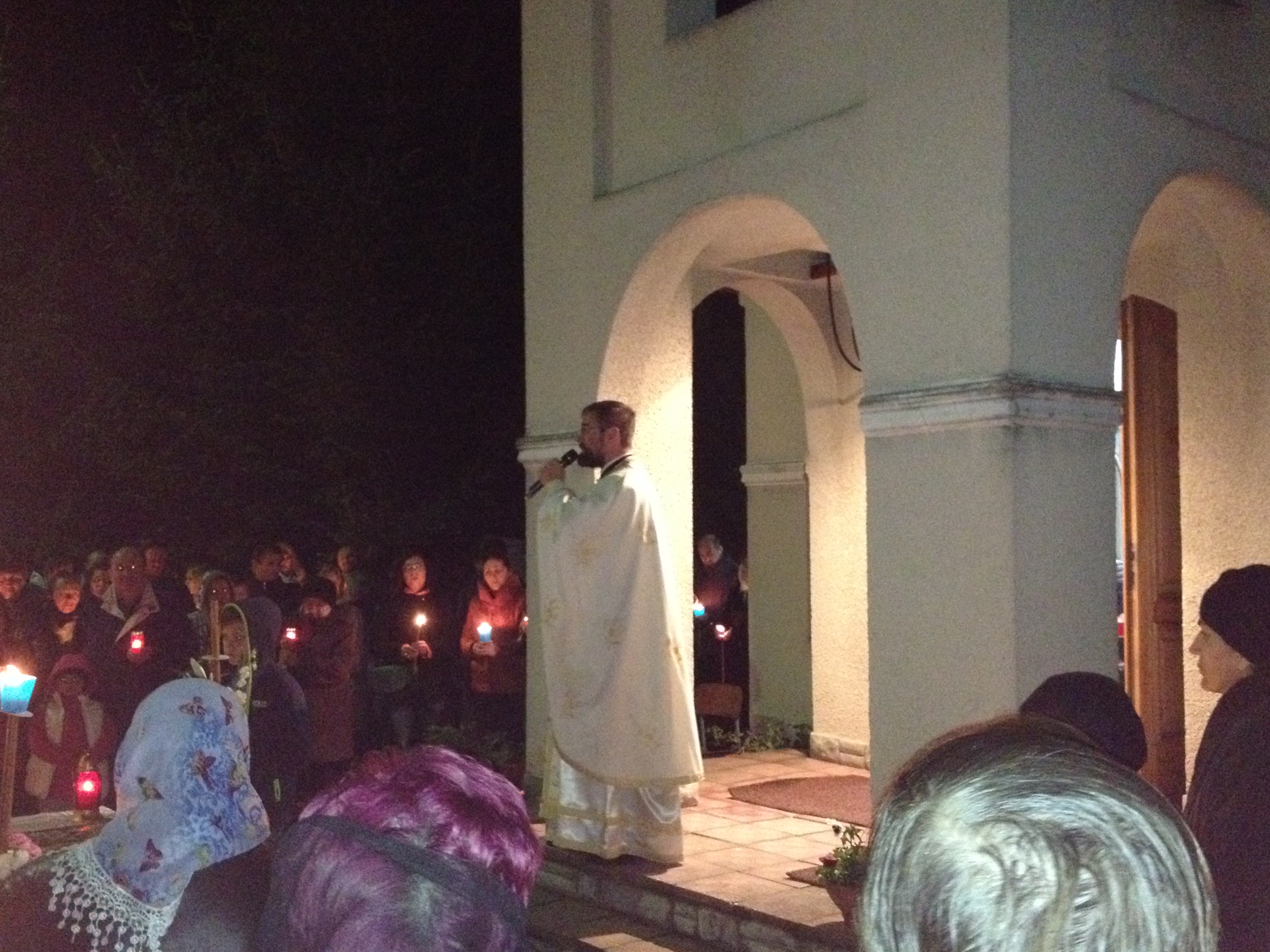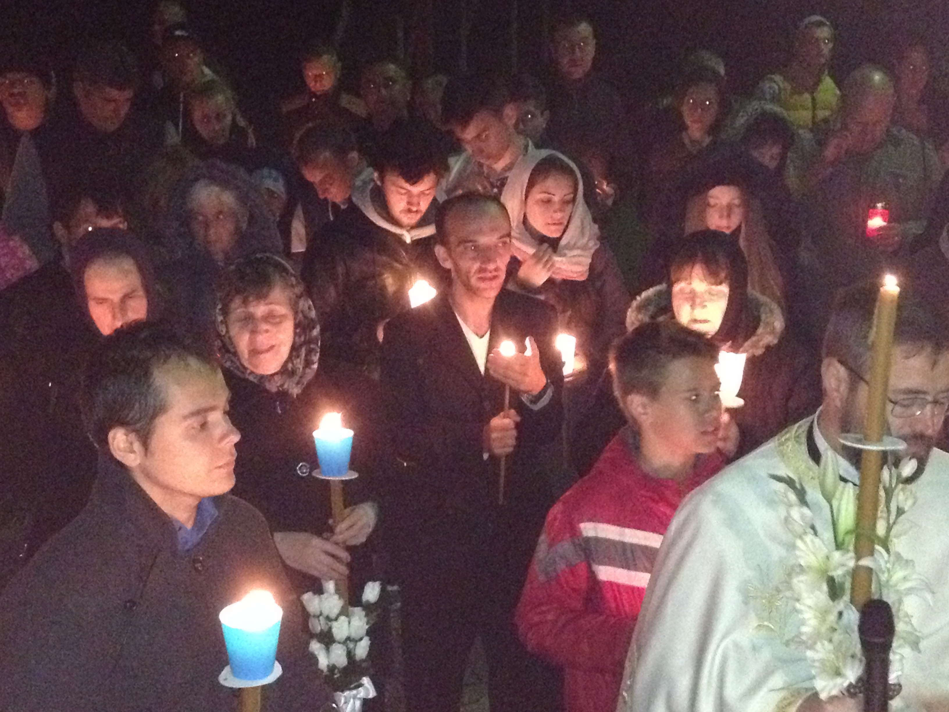 Prin slujba Învierii, celebrată de părintele Nicolae Petrişor, a fost transmis celor prezenţi esenţa miracolului pascal. El a vorbit acestora despre planul de mântuire al lui Dumnezeu care se împlineşte şi nu poate fi oprit, aşa cum nu poate fi oprită primăvara cu îmbobocirea şi înflorirea florilor şi reînvierea naturii. Răsturnare a cursului timpului ce se îndrepta de la viaţă spre moarte, Utrenia Învierii a reorientat existenţa de la moarte spre viaţă, în noaptea de sâmbătă spre duminică, 30 aprilie/ 1 Mai, prin celebrarea biruinţei vieţii, prin intonarea cântării de învingere: „Hristos a Înviat din morţi cu moartea pe moarte călcând şi celor din morminte viaţă dăruindu-le!”.