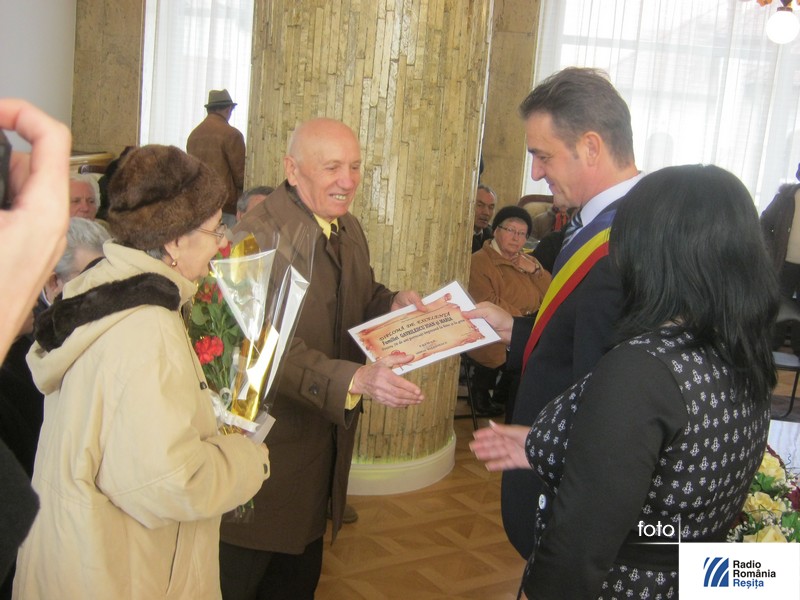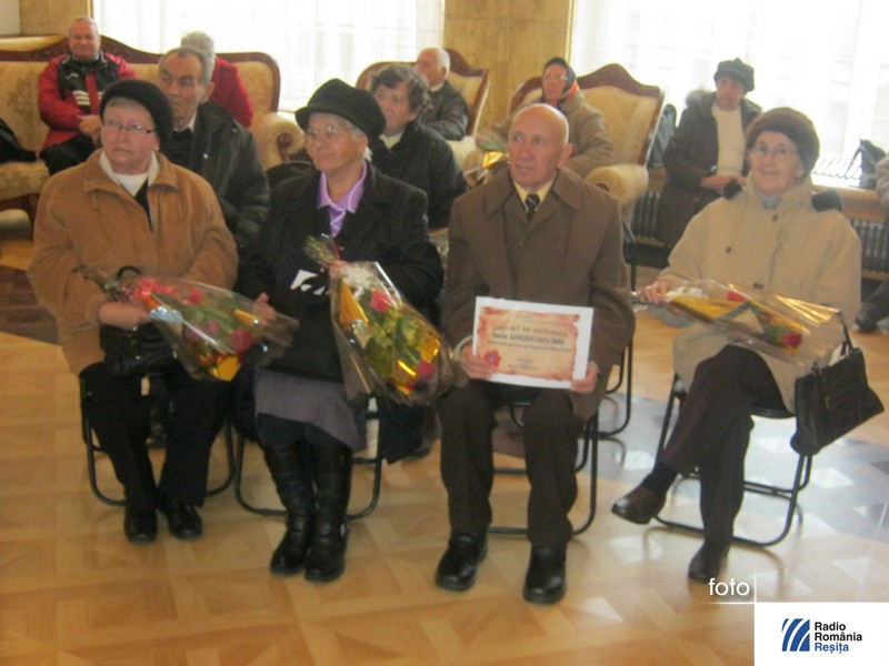 Înţelegerea şi comunicarea par să fie secretul unei căsnicii de durată, cel puţin asta cred cuplurilecare au aniversat nunta de aur. Cu ocazia aniversării a 50 de ani de căsătorie, 24 de cupluri din Reşiţa au fost felicitate şi premiate astăzi de primarul municipiului Mihai Stepanescu. Sărbătoriţii au fost invitaţi la Casa Municipală pentru a ciocni un pahar de şampanie. Cuplurile de reşiţeni au primit din partea primăriei diplome de excelenţă, flori şi o recompensă materială în valoare de 300 lei.