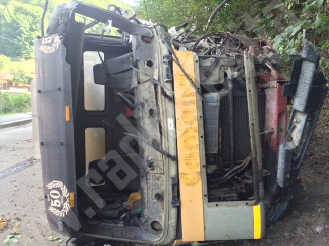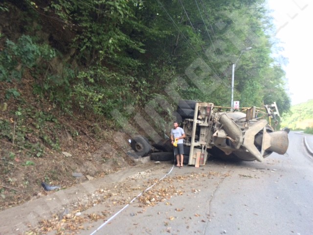 Prezenţa de spirit a unui şofer profesionist a dus la evitarea unui accident rutier cu urmări deosebit de grave. O autospecială de transport beton s-a răsturnat pe carosabil, la ieşirea din Reşiţa, spre cartierul Cuptoare. Accidentul a fost unul controlat de către şofer, care a simţit că autovehiculul a rămas fără frâne, spune unul dintre martorii evenimentului: