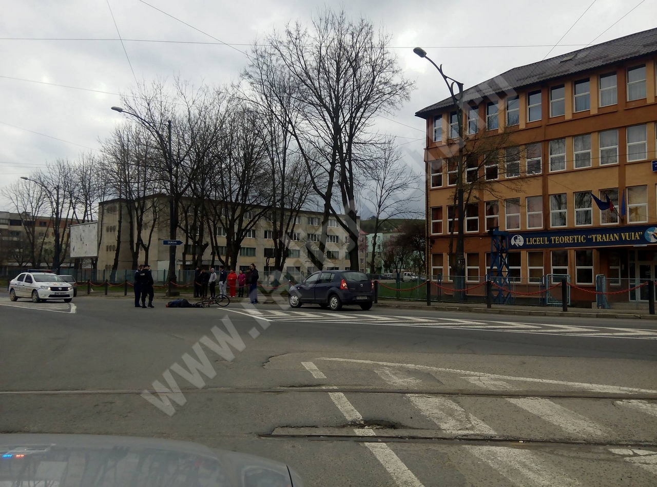 Potrivit IPJ Caraş-Severin, poliţiştii municipiului Reșița au fost sesizați despre producerea unui accident rutier soldat cu rănirea ușoară a unei persoane, în fața liceului Traian Vuia din Reșița.
