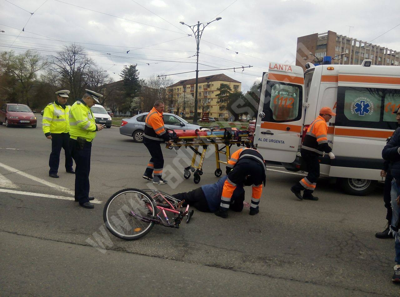 Un biciclist a fost spulberat de o maşină care circula spre Calea Caransebeşului. Este vorba de un bărbat de aproximativ 50 de ani, care se pare că a avut noroc, deoarece la prima vedere nu pare să fi fost rănit grav. Este conştient, dar s-a ales cu capul spart. Acesta a fost preluat de ambulanţă şi transportat la Spitalul Judeţean de Urgenţă din Reşiţa pentru investigaţii. La faţa locului a venit şi poliţia, iar cel mai probabil şoferul se va alege cu dosar penal. Conducătorul auto susţinea ca nu a văzut biciclistul.