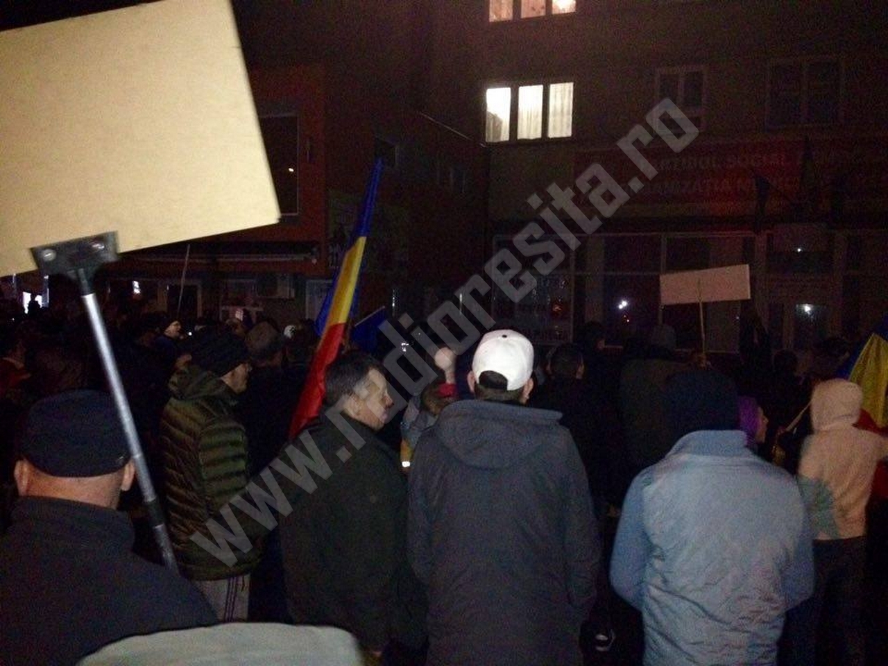 Câteva sute de reşiţeni s-au strâns şi în această seară în centrul civic al oraşului. Protestatarii scandează lozinci antiguvernamentale şi anti PSD.