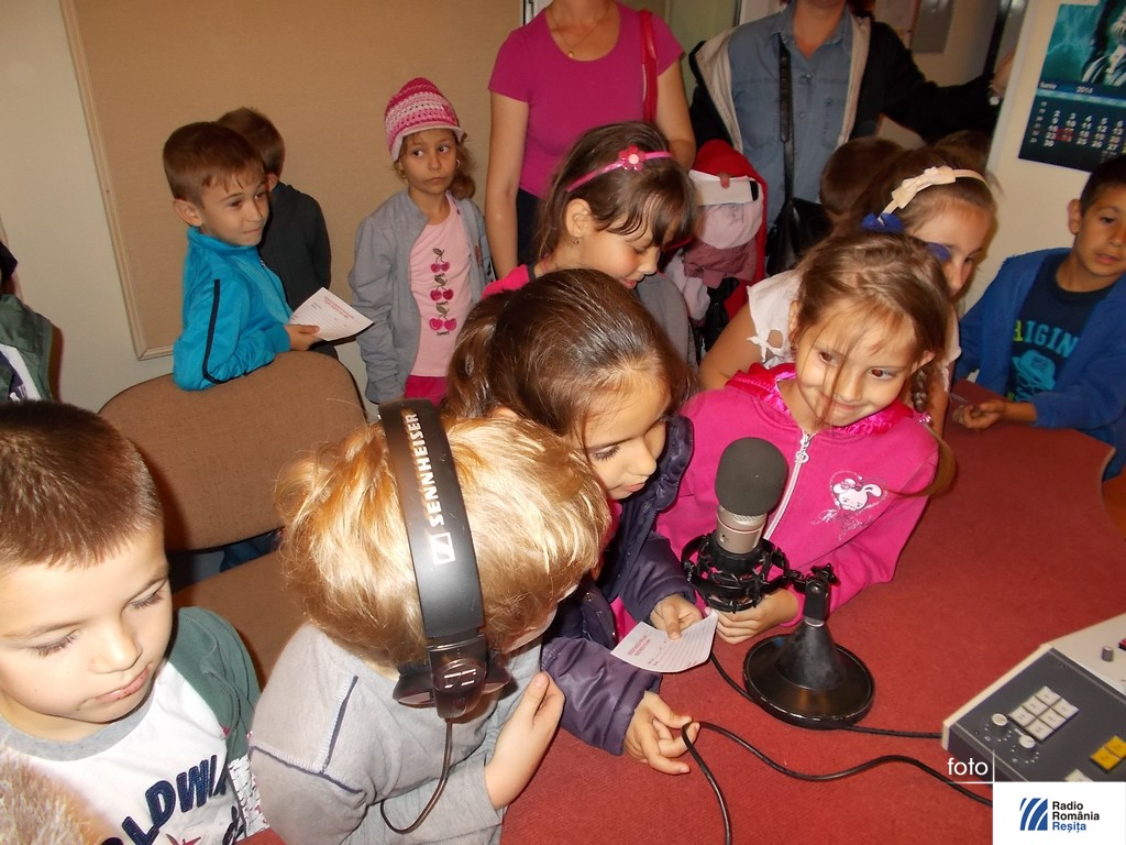 Copiii au fost impresionaţi de cabina de producţie, unde au vorbit pentru prima dată la un microfon. Fetele au spus că le-ar plăcea să lucreze la Radio România Reşiţa, când vor creşte mari.