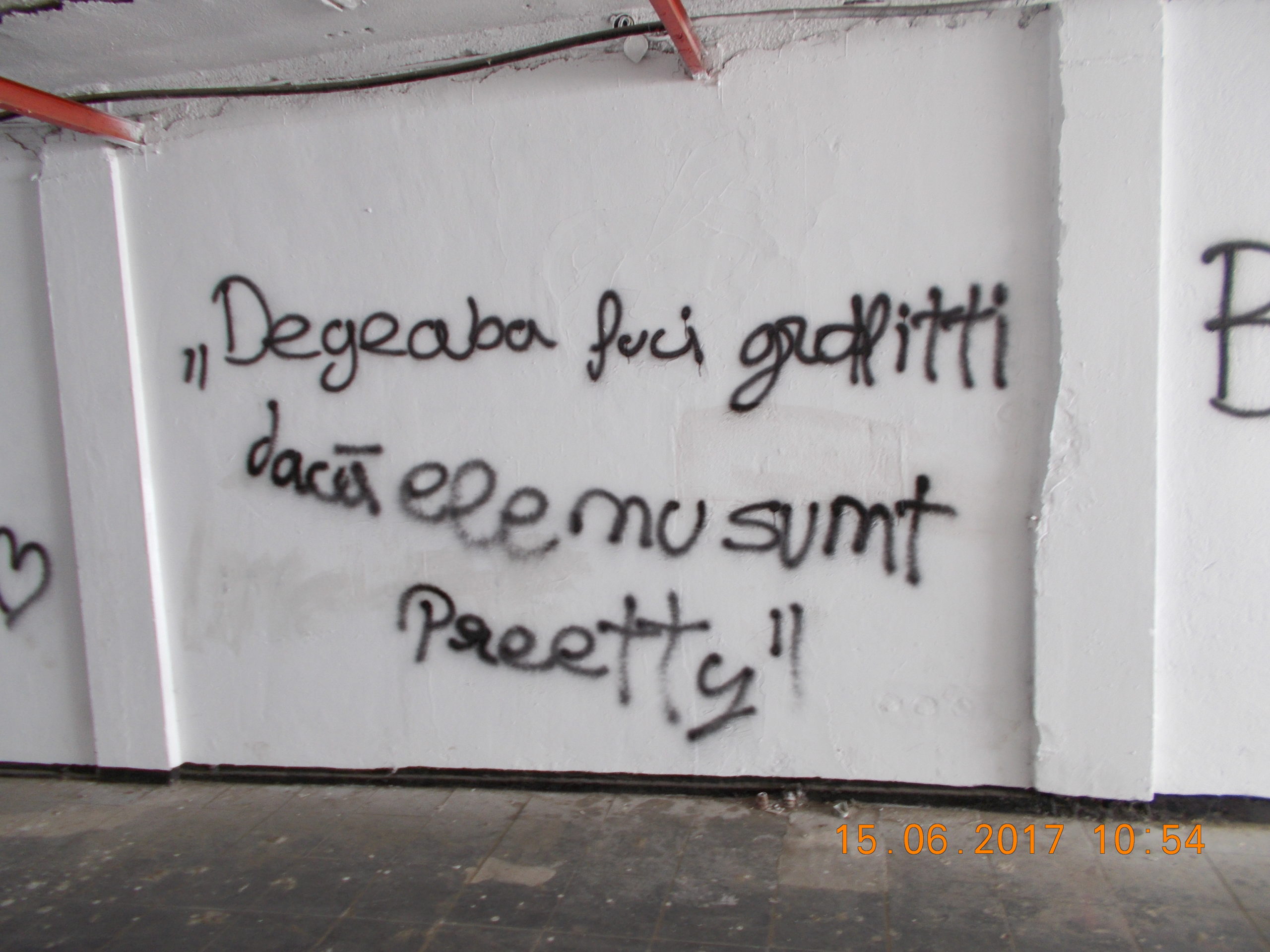 Poliţiştii locali din cadrul Biroului Inspecţie şi Control al Direcţiei Poliţia Locală a municipiului Reşiţa, în jurul orei 11, au surprins un număr de trei tinere în Centrul Civic din municipiul Reşiţa, la pasajul subteran de pe str. I.L. Caragiale, două dintre acestea desenând pe pereţii pasajului cu un spray de culoare neagră, încălcând astfel prevederile legale care interzic aceste fapte.