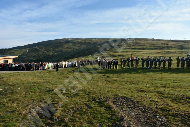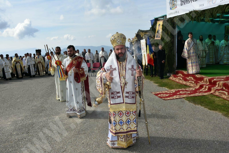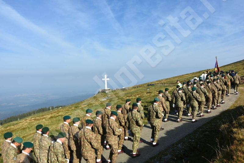 La crucea-monument de pe Muntele Mic se desfăşoară la această oră (n.r. ora 12.00) o ceremonie religioasă dedicată celei mai vechi sărbători închinate cinstirii lemnului sfânt, Înălţarea Sfintei Cruci, eveniment organizat în memoria eroilor români făuritori ai Marii Uniri de la 1918.