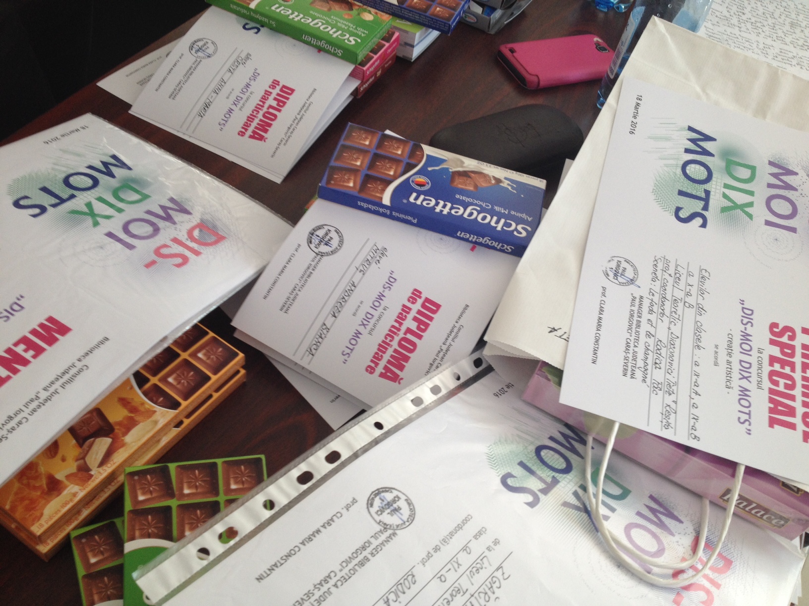 Astăzi a avut loc premierea elevilor care au participat la concursul dedicat francofoniei „Spune-mi 10 cuvinte” organizat ca în fiecare an de Biblioteca judeţeană Paul Iorgovici. La această a 10-a ediţie au participat tineri francofoni din Reşiţa, Caransebeş, Oraviţa şi Berzovia, care au avut de scris o lucrare cu 10 cuvinte din mai multe ţări francofone, între care Tahiti, Congo , Luxemburg sau Elveţia. În acest an concursul s-a desfăşurat pe mai multe secţiuni, respectiv creaţie plastică, literară, teatru-film şi o secţiune specială pentru adulţii francofoni. Elevii din clasa a 11-a a Liceului Diaconovici-Tietz, pe baza aceloraşi cuvinte au prezentat o scenetă, iar înainte de decernarea premiilor şi a diplomelor de participare, tânăra Raluca Topală – absolventă şi ea a liceului menţionat , care lucrează la ONU şi a vizitat mai multe ţări, a împărtăşit copiilor câte ceva din experienţa acumulată în statele africane francofone. Elevii au primit diplome , dulciuri, şi în funcţie de secţiune, seturi de acuarele şi dicţionare. Concursul a fost organizat ca în fiecare an cu sprijinul nemijlocit al Asociaţiei de preitenie Caraş-Severin – Franţa şi al Consiliului Judeţean. Reuniunea a avut loc la secţia franceză a Bibliotecii judeţene, în prezenţa elevilor de la unităţile de învăţământ reşiţene participante la concurs, a reprezentanţilor Asociaţiei de prietenie Caraş-Severin – Franţa, şi a fost moderată de bibliotecara Eugenia Burileanu.(Daniela Tudor)