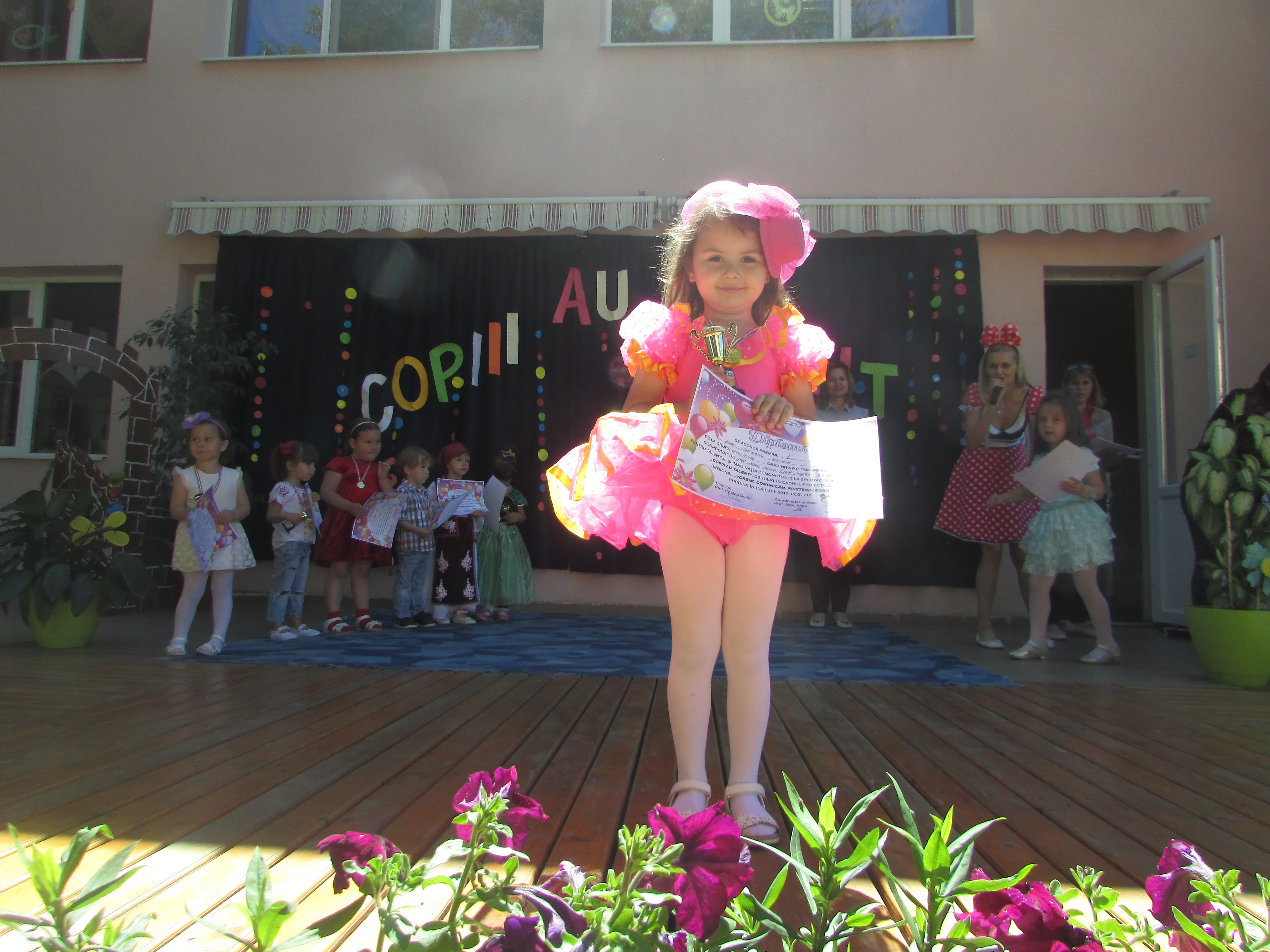 La spectacolul-concurs au participat 20 de preșcolari de la grupele mici, mijlocii și mari și toți au fost premiați cu diplome și medalii. Locurile 1 ( 6 concurenți) au plecat acasă și cu trofeul „Copiii au talent”.