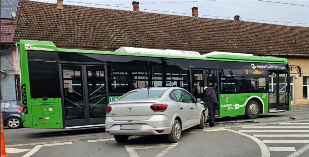 Un autobuz al Societății Transport Urban Reșița a fost implicat, în această dimineață, într-un incident rutier. Mijlocul de transport în comun a fost lovit de un autoturism al cărui șofer nu s-a asigurat la virajul la stânga. Accidentul a avut loc pe strada Traian Lalescu, în apropierea Universalului Vechi. În urma impactului, nu au rezultat victime, însă ambele autovehicule au fost avariate. Șoferul autoturismului urmează să achite daunele provocate autobuzului electric, mai spune viceprimarul Daniel Călin.