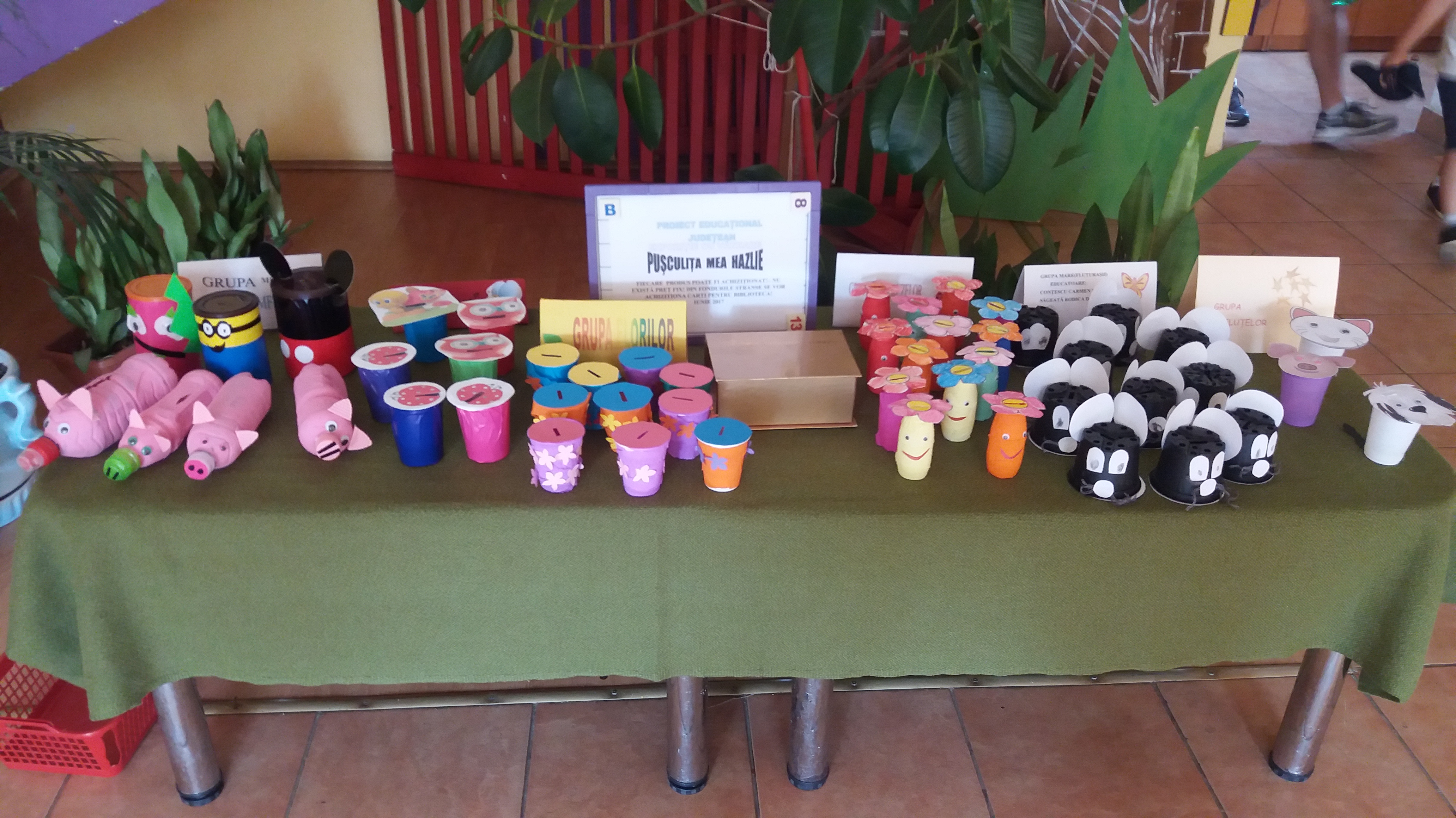 „Ce este trocul?” – joc de rol (luna mai) iar evaluarea proiectului a constat în expoziția cu vânzare ,,Pușculița mea hazlie’’(iunie). Astfel, copiii au aflat că pot economisi bani în puşculiţa proprie pentru a-şi putea achiziţiona jucăria preferată.