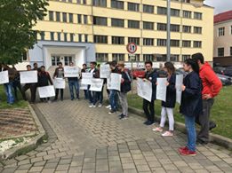 Astăzi un grup de studenţi de la Facultatea de Inginerie şi Management de la UEM au ieşit în curte însoţiţi de pancarte, dar şi de profesori ai Facultăţii.