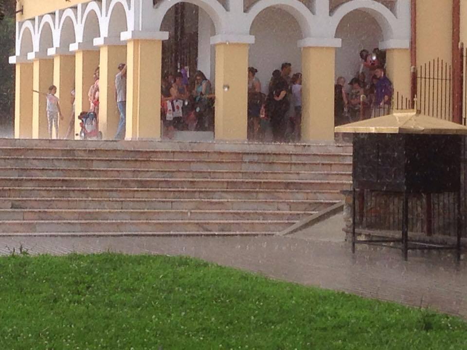Din păcate o ploaie torențială de vară i-a făcut pe spectatori să se adăpostească în locurile care le-au fost la îndemână, iar partea tehnică a cam fost udată.