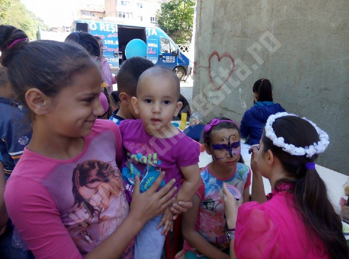 Emoţii, lacrimi… de fericire şi multă distracţie. Aşa poate fi descris pe scurt evenimentul organizat de Radio România Reşiţa pentru copiii care beneficiază de serviciile Fundației Sociale Humanitas Pro Deo din Caraș-Severin, copii care poate nu şi-au serbat niciodată ziua de naştere sau onomastica, copii care provin din familii nevoiaşe, care trăiesc dintr-un salariu minim pe economie sau pur şi simplu copii care nu au părinţi. Sunt copii care în ciuda problemelor de zi cu zi nu renunţă la şcoală, deoarece ştiu că doar aşa pot avea un trai mai bun. Au pătruns în lumea poveştilor mai mult de 70 de copii, lumea poveştilor din trecut, dar şi a personajelor prezente. Prinţese, supermani, dalmaţieni, clovni i-au purtat pe cei mici într-o lume de vis. Înconjuraţi de baloane colorate, copiii de toate vârstele, alături de echipa Radio România Reşiţa şi voluntari de la Centrul Mansarda din Reşiţa au uitat de neajunsuri şi au sărbătorit copilăria, o perioadă în care ne este permis să visăm, să fim cu adevărat fericiţi, să zâmbim la lucruri aparent banale, aşa cum s-a întâmplat astăzi. Copiii s-au bucurat de fiecare secundă. Au început prin a participa la concursul de dans, apoi la cel de desene pe asfalt, în care au exprimat în diferite nuanţe, ziua de 1 iunie. Cei mai micuţi au fost ajutaţi şi susţinuţi de pe margine, chiar de părinţi. Fetele, dar şi unii băieţei s-au încumetat să participle la karaoke, unii au încercat să joace şotron. Printre razele de soare, am dansat, am cântat şi ne-am simţit şi noi din nou copii. „Clovnul vesel”, îmbrăcat într-un costum haios, a adus buna-dispoziţie şi s-a întrecut în giumbușlucuri. El a fost cel care a alungat timiditatea şi a dat tonul distracţiei. Înghesuială mare a fost la ateliere de pictură pe faţă, modelare baloane, confecţionare de brăţări şi surprizele au continuat, am continuat să dăruim zâmbete.