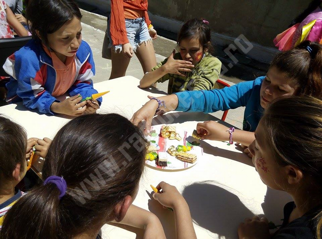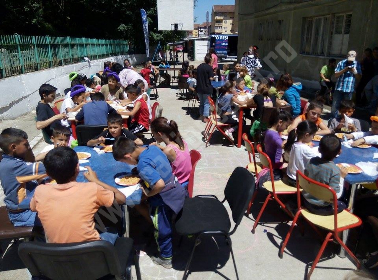 În timp ce copiii se distrau în aer liber în bucătărie a început operaţiunea numită „Spaghetti bolognese”, o surpriză pregătită tot pentru cei mici, despre care nu ştiau nimic. Reporterii Radio România Reşiţa au lăsat pentru câteva ore reportofoanele, pixurile, etc şi au trecut la cratiţă pentru un scop nobil. Sosul a fost preparat după o reţetă originală a bucătarului Giorgio Fachetti, un italian stabilit în Reşiţa, voluntar al centrului social Humanitas Pro Deo. Sub supravegherea acestui bucătar profesionist, am bucătărit, iar rezultatul a fost unul pe măsură. Mai ales că atunci când faci totul cu suflet nu se poate să nu iasă bine. Toate cele peste 100 de porţii de spaghetti au fost savurate. Apoi au urmat băuturile răcoritoare şi surprizele dulci. Copiilor le-am oferit şi cadouri, fiecare a avut câte o pungă plină cu diverse rechizite, dulciuri, jucării.