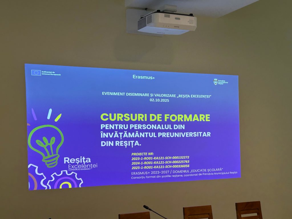 Direcția de Învățământ din cadrul Primăriei Reșița a organizat joi, 2 octombrie 2025 de la ora 15:00, în sala de ședințe a instituției, evenimentul „Reșița excelenței – cursuri de formare pentru personalul din învățământul preuniversitar”. Întâlnirea are ca scop diseminarea și valorizarea experiențelor dobândite în cadrul proiectului Erasmus+, coordonat de Primăria Reșița împreună cu școlile partenere din municipiu.