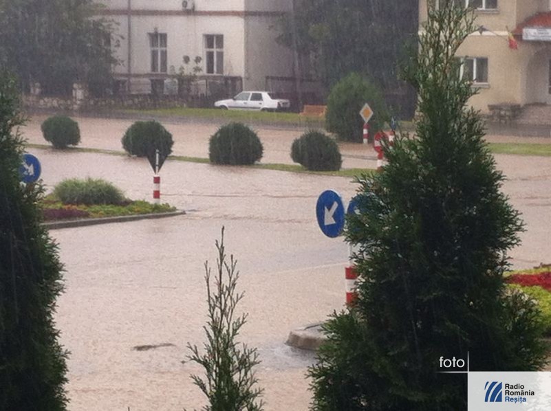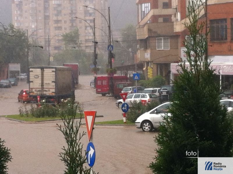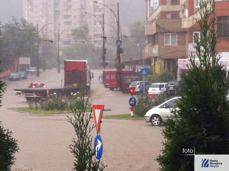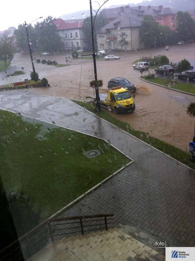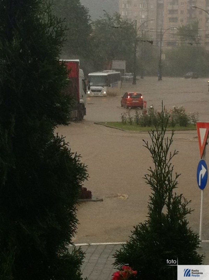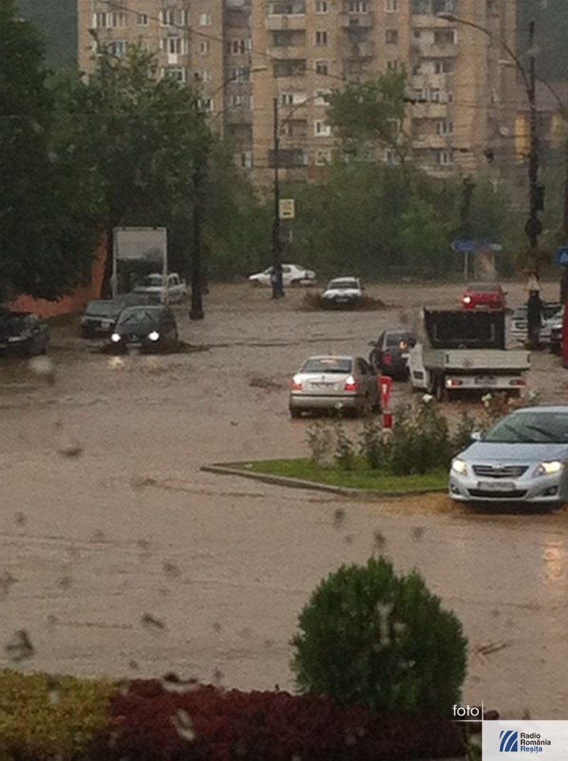 În după amiaza zilei de vineri o ploaie abundentă s-a abătut asupra municipiului Reşiţa. Din cauza canalizării, care nu poate face faţă de fiecare dată când vine o ploaie mare, nici acum apa nu s-a scurs de pe străzile din zona centrală decât foarte greu. În timpul intemperiei circulaţia s-a desfăşurat deosebit de greu, din cauza apei care a acoperit partea carosabilă. Au fost curţi şi subsoluri inundate, iar un podeţ de pe strada Butovăţ s-a înfundat. Pompierii militari au intervenit cu 4 echipaje, la care s-au adăugat două de la Serviciul Voluntar pentru Situaţii de Urgenţă Reşiţa.