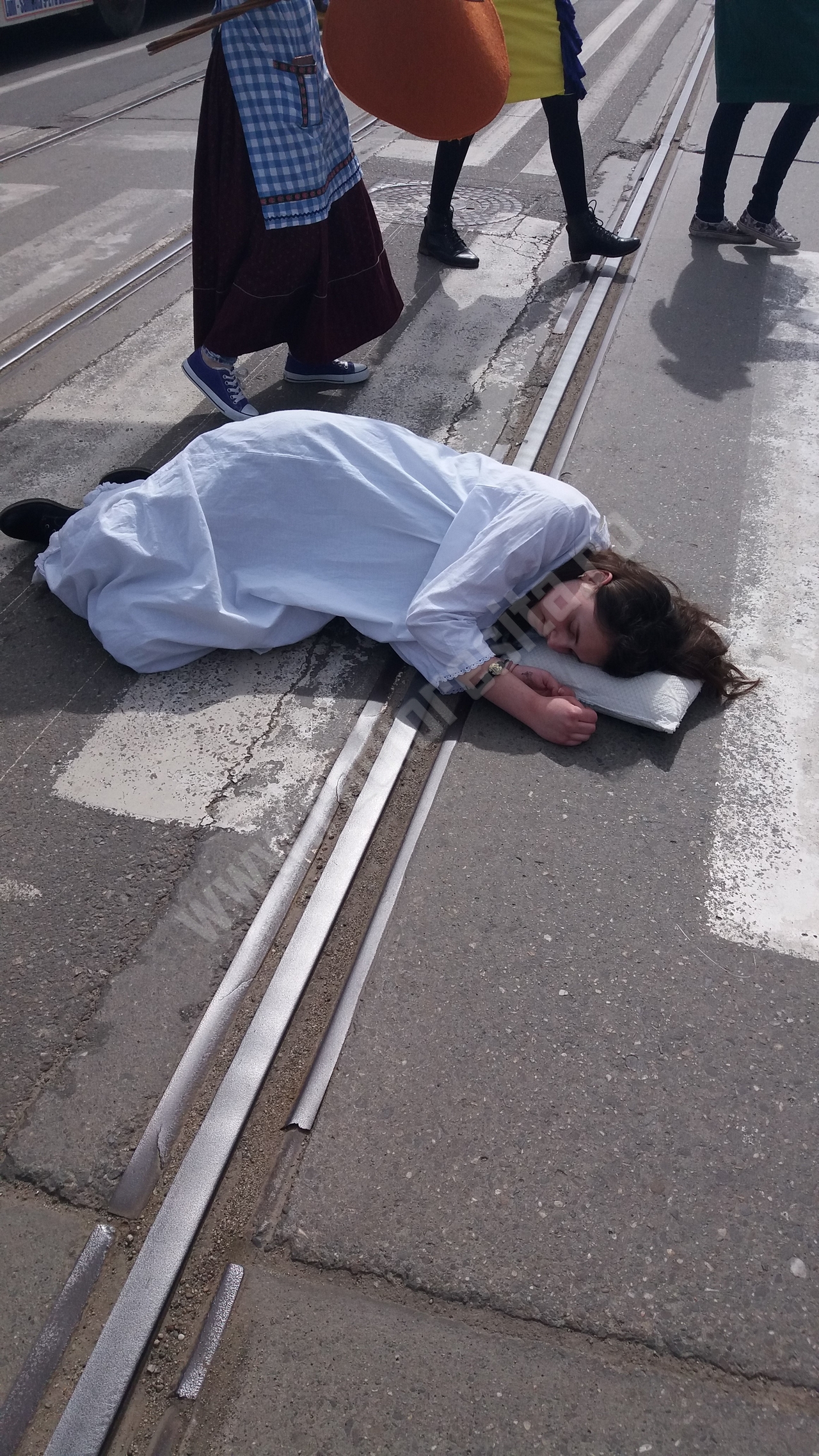 Cei peste 40 de voluntari au pornit din fața Universității Eftimie Murgu, deghizați în diferite costume. Şoferii și trecătorii au fost încântați de glumele făcute de voluntari și de inițiativa lor de a face farse, dar și de costumele pline de culoare si originalitate. Toți participanții la trafic, în jurul orei 12.00, au avut ocazia de a vedea personaje de tot felul, de la clovn, scufița roșie pană la medic legist sau Moș Crăciun. Coordonatorul acestei acţiuni, Daniela Lupşan – consilier pentru tineret în cadrul Direcţiei Judeţene pentru Tineret şi Sport Caraş-Severin, a precizat pentru Radio România Reşiţa că încearcă an de an să smulgă zâmbete de la reșițeni dar că nu întotdeauna aceștia au reacții pozitive la acțiunea lor. Cu toate acestea, voluntarii nu se opresc aici și la anul vor continua să înveselească pietonii sau șoferii muncipiului Reșița.