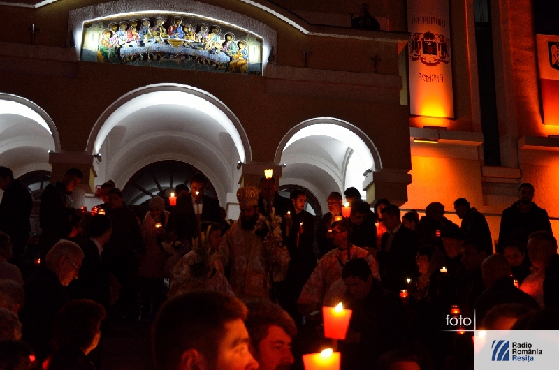 Peste 3000 de porţii cu „paşte” au fost pregătite pentru credincioşii aflaţi în centrul civic la miezul nopţii, care au ascultat în linişte, cu lumânările aprinse cuvântul PS Lucian, aflat în fruntea unui sobor de peste 20 de preoţi şi diaconi.