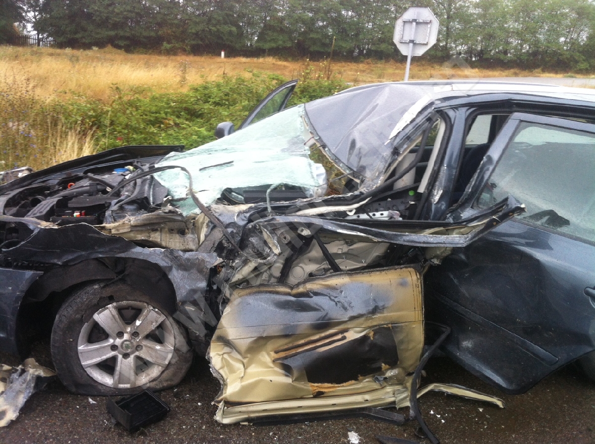 [FOTO] Accident grav pe DN 58, între Reșița şi Soceni. O familie şi-a văzut moartea cu ochii