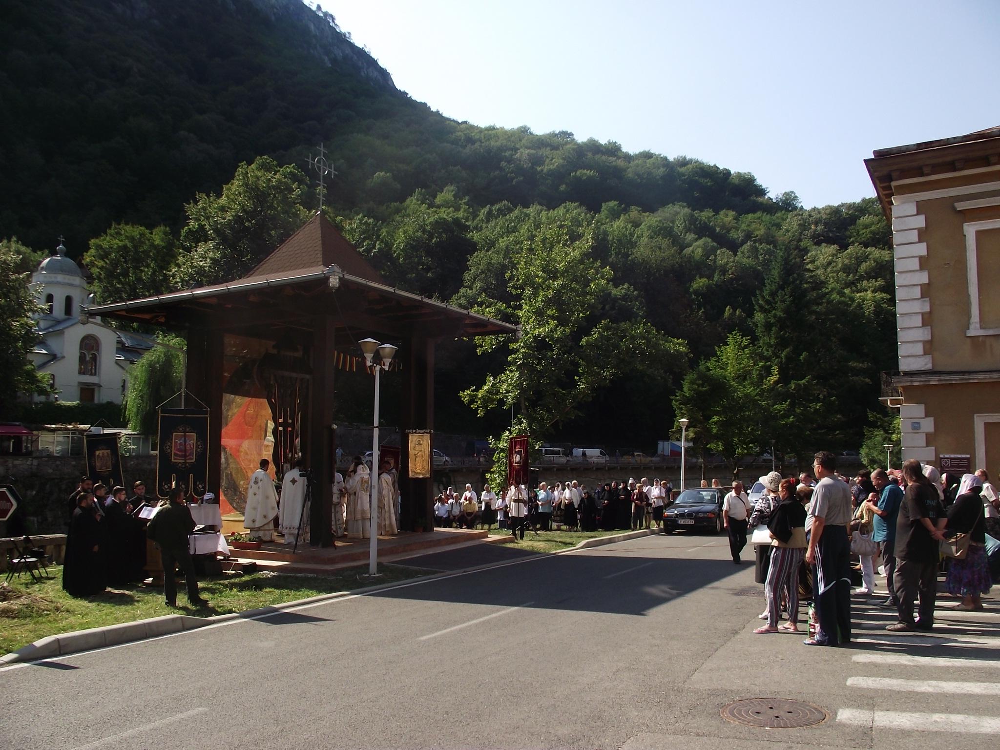 ZILELE ORAŞULUI BĂILE HERCULANE au început vineri dimineaţă cu slujba Sfintei Liturghii săvârşită la troiţa de pe malul Cernei de Prea Sfinţitul Lucian – Episcopul Caransebeşului, înconjurat de un sobor d epreoţi din Episcopia Caransebeşului. Troiţa este ridicată în apropierea Mănăstirii NAŞTEREA MAICII DOMNULUI, care prăznuieşte hramul lăcaşului de cult. La slujba religioasă au participat un număr mare de credincioşi, pe parcursul ceremoniei religioase în zonă fiind închis traficul rutier.