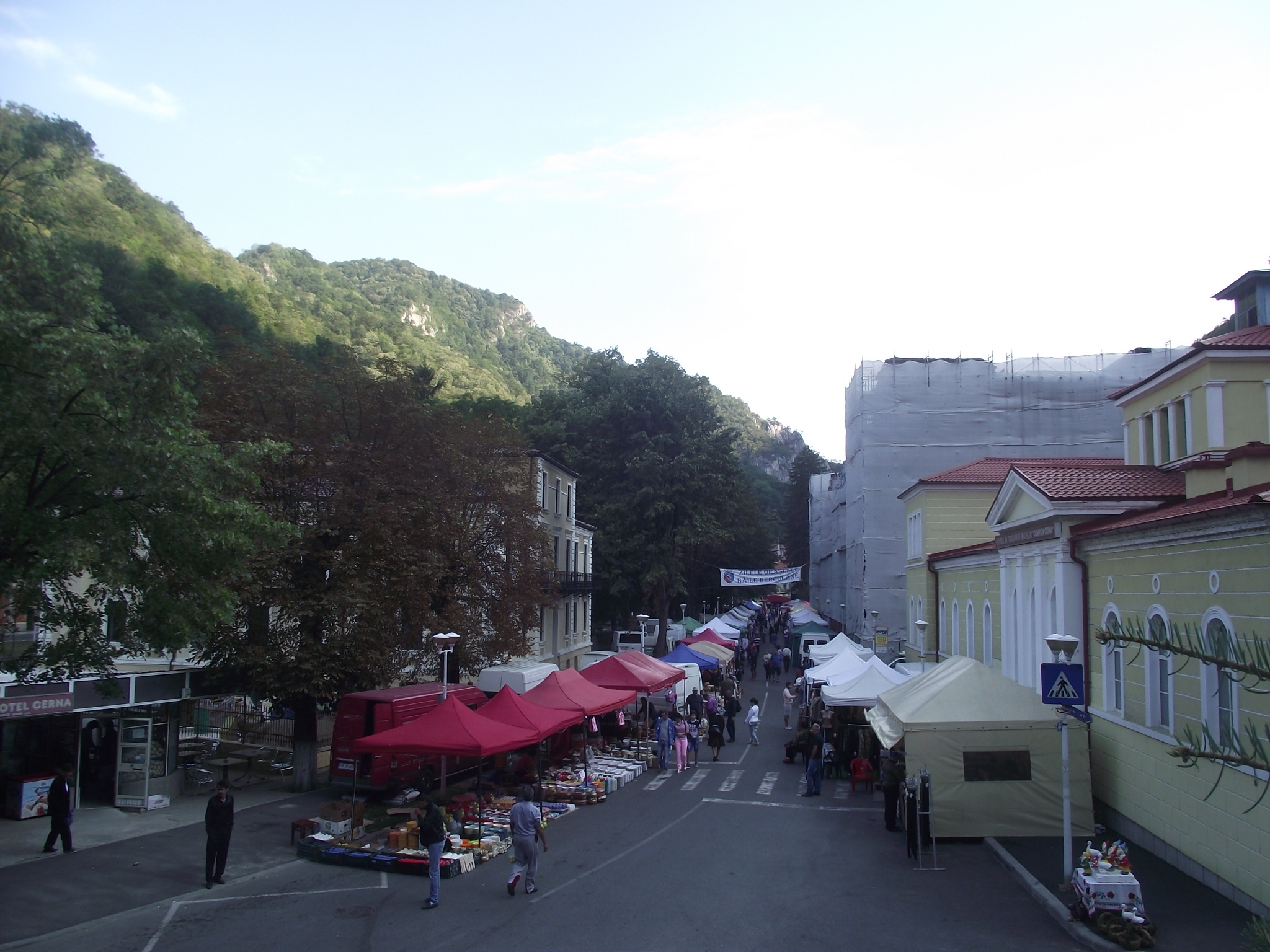 Pe malul celălalt al Cernei este o intensă activitate la standurile comerciale amenajate pe drumul din faţa Parcului Central, activitatea devenind mai intensă după orele prânzului, când şi numărul clienţilor a început să crească! Sunt amenajate standuri cu produse alimentare – de la mititei, cîrnăciori, frigărui, ceafă de porc, carne de pasăre, până la deserturi -, dar şi standuri cu articole de îmbrăcăminte, încălţăminte, suveniruri, artizanat sau vechituri. Copiii au şi ei parte de un parc de distracţii amenajat în dreptul Hotelului Decebal, dar şi alte distracţii.