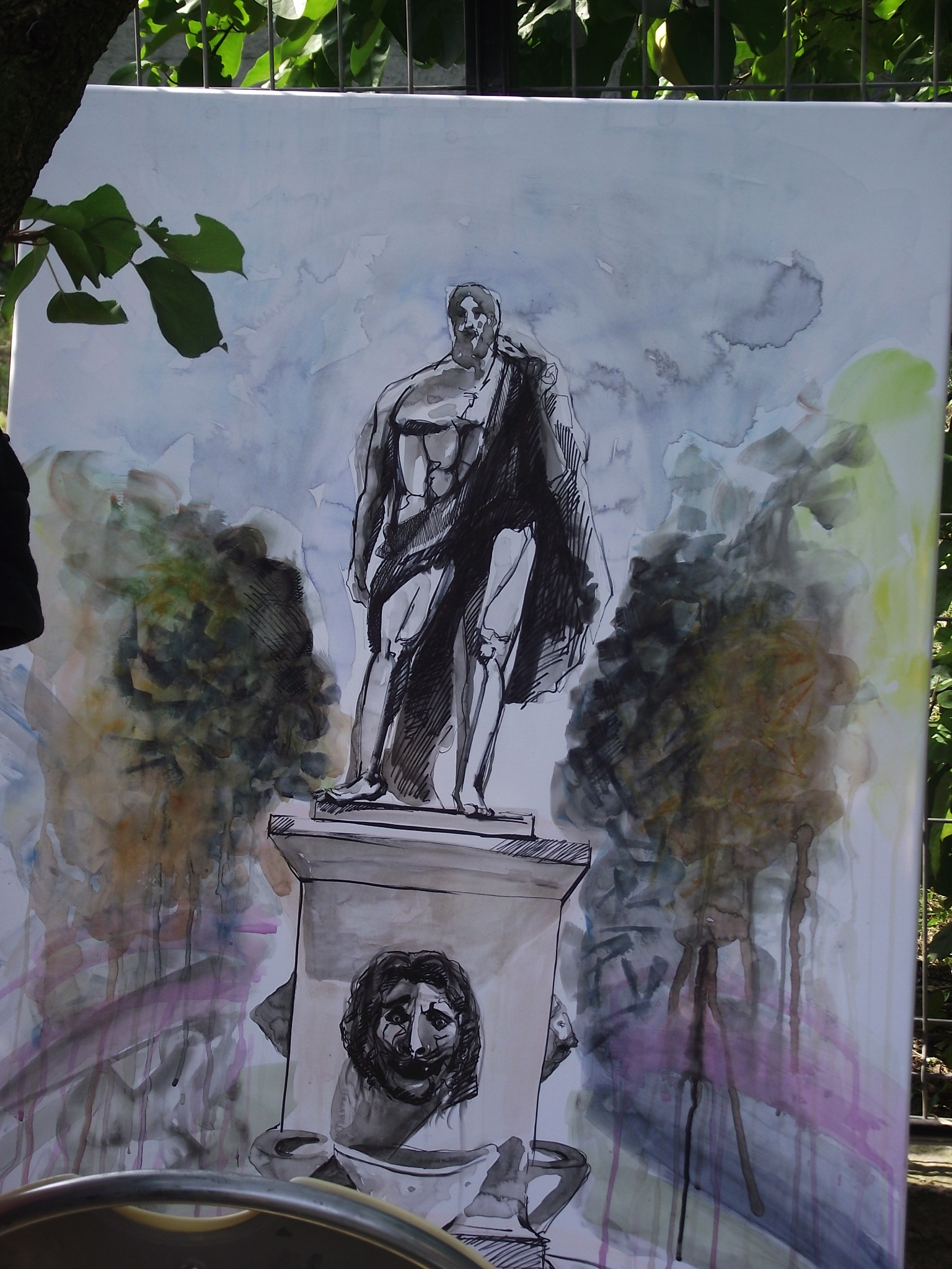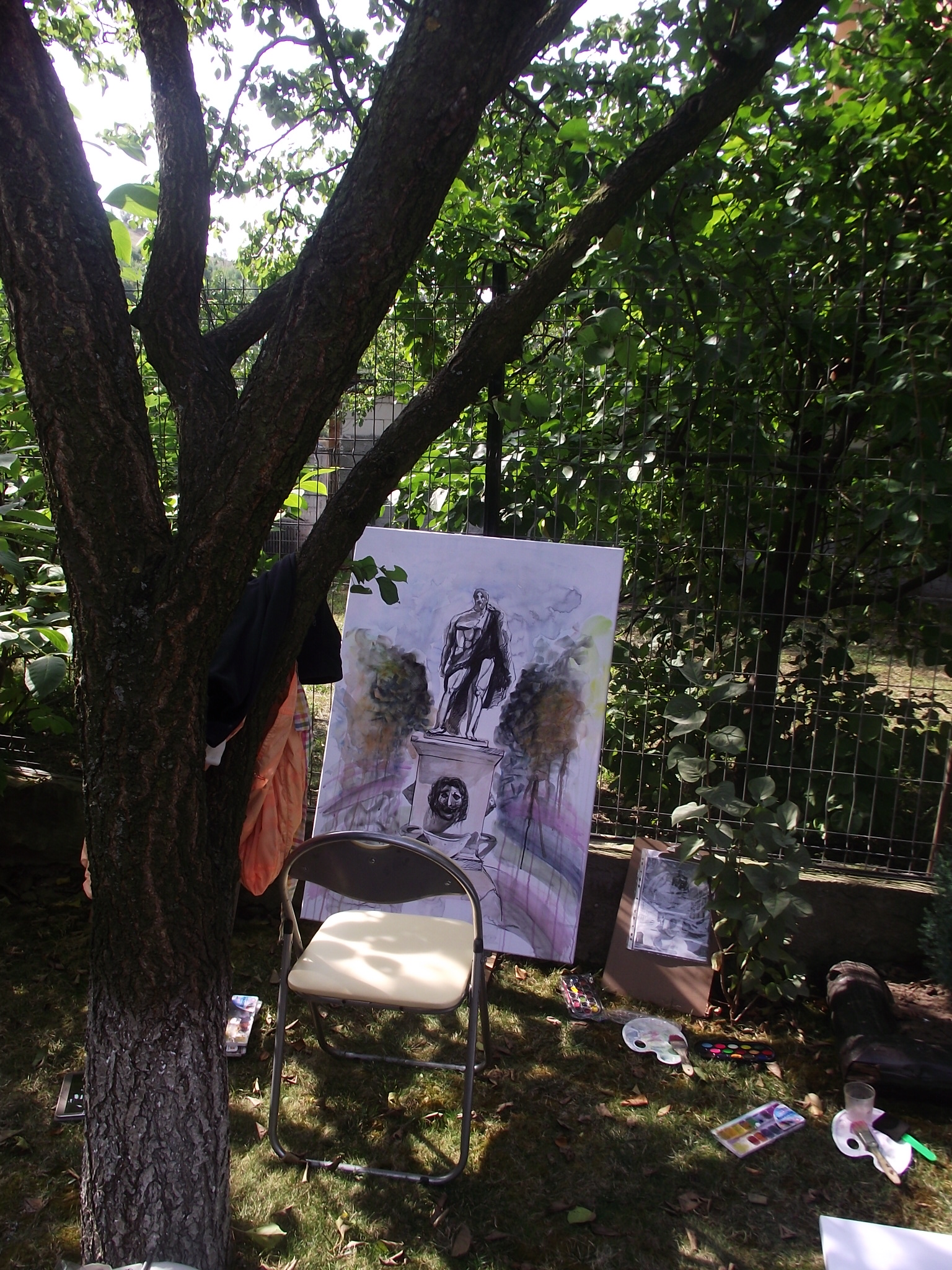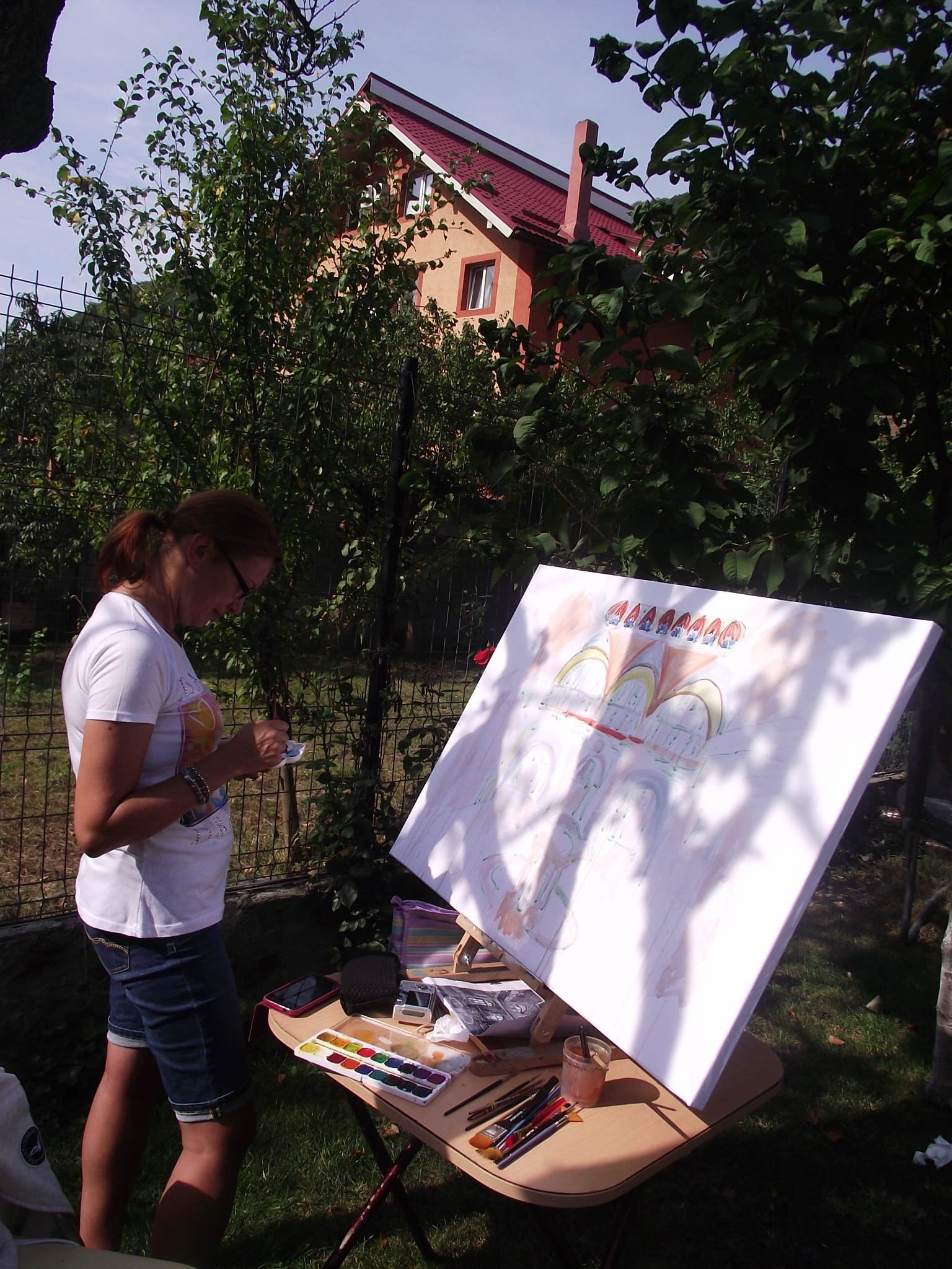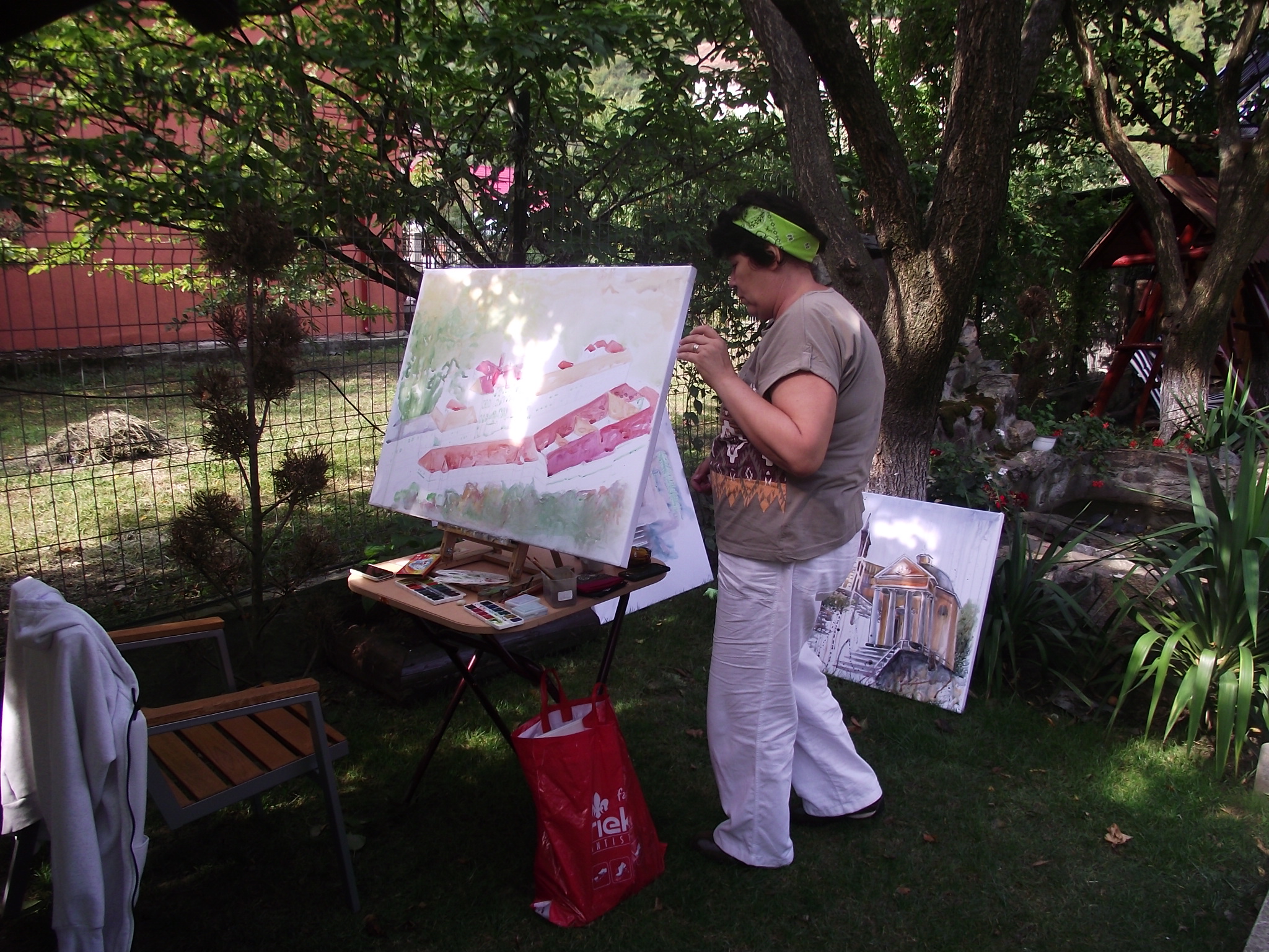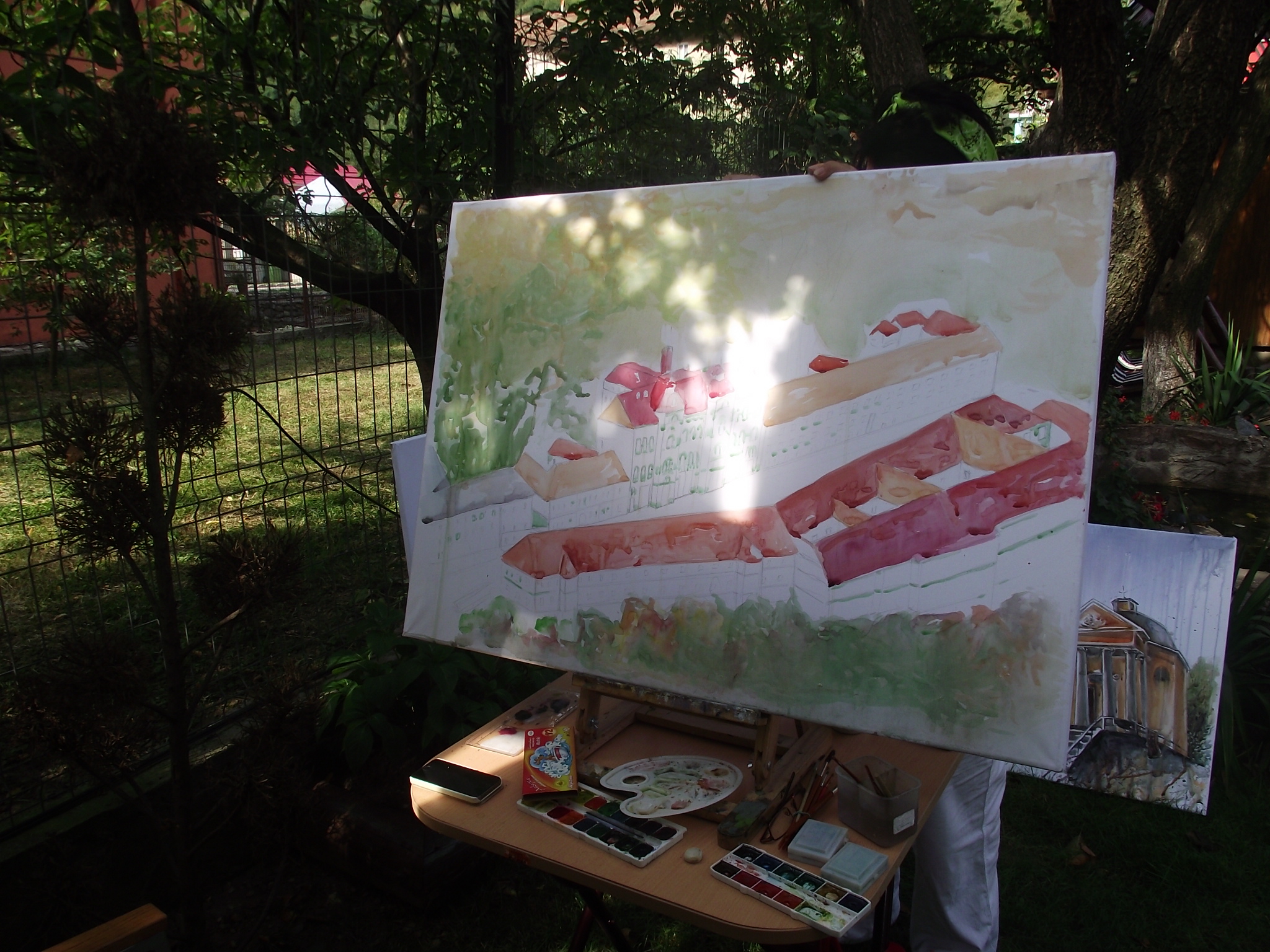 În curtea pensiunii era o activitate intensă la şevalete, unde prindeau contur sau chiar au fost puse pe hârtie o serie de obiective istorice din staţiune!