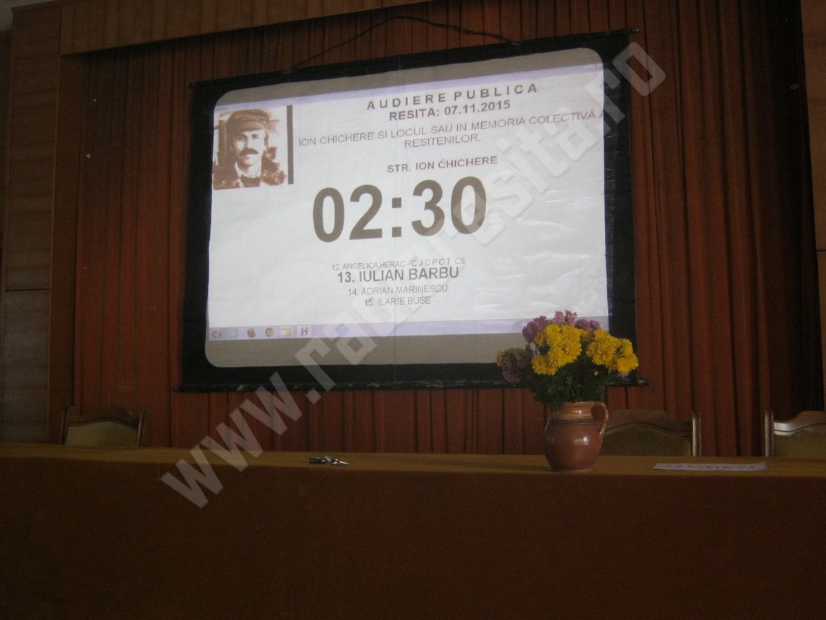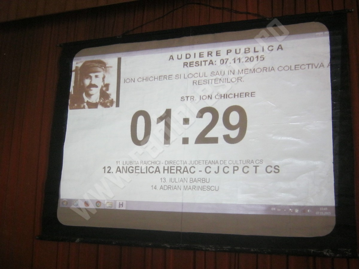 De aceea, la audierea publică „Ion Chichere şi locul său în memoria colectivă a reşiţenilor” condusă de managerul Casei de Cultură a Sindicatelor, Marian Apostol, au luat cuvântul peste 30 de vorbitori. Unii au propus chiar instalarea unui panou electric care să afişeze din timp în timp versuri din creaţia poetului. Au fost însă şi voci mai realiste ca aceea deplin avizată a Ioanei Mihăescu, arhitect şi artist plastic, care a pus problema haosului birocratic pe care l-ar genera în schimbarea actelor şi nu numai: