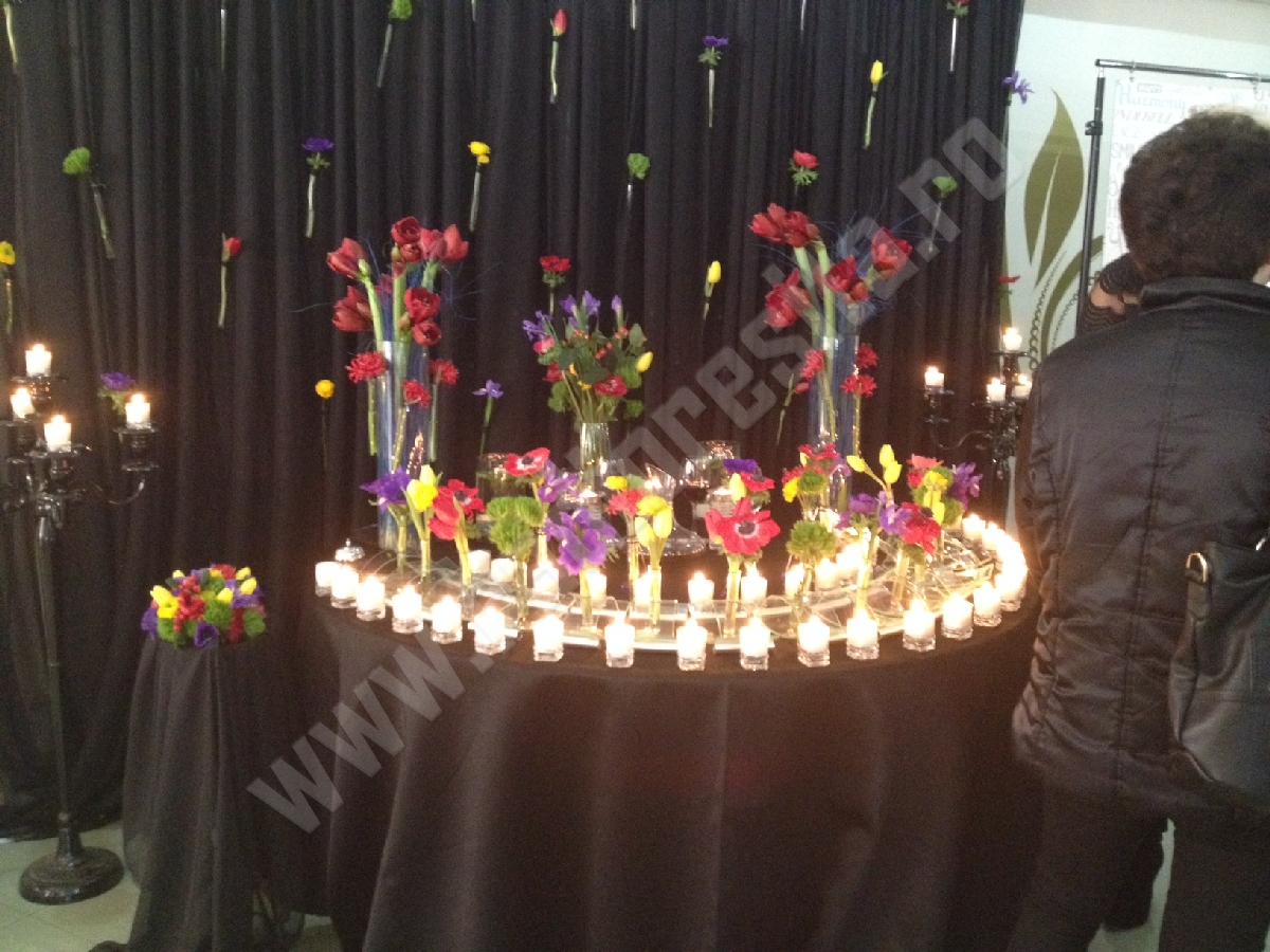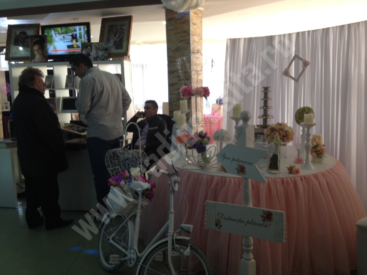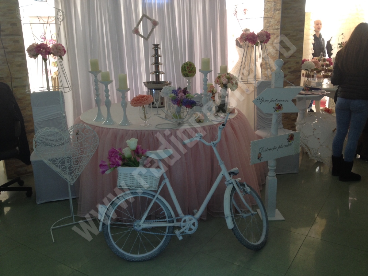 Într-o singură zi, cei interesaţi îşi pot planifica întreaga nuntă. Viitoarele mirese şi-au ales rochia, prăjiturile, florile dar şi decorul. În acest an se poartă rozul quarţ şi albastrul seren, ne-a declarat principalul organizator, Valentina Chivu. In ceea ce priveşte decorul, miresele au avut de unde alege. Cel mai mult a ieşit în evidenţă standul decorat cu mătase şi voal negru, lumânări şi flori colorate aşezate în eprubete. Inedit, dar foarte elegant, acesta a atras toate privirile.