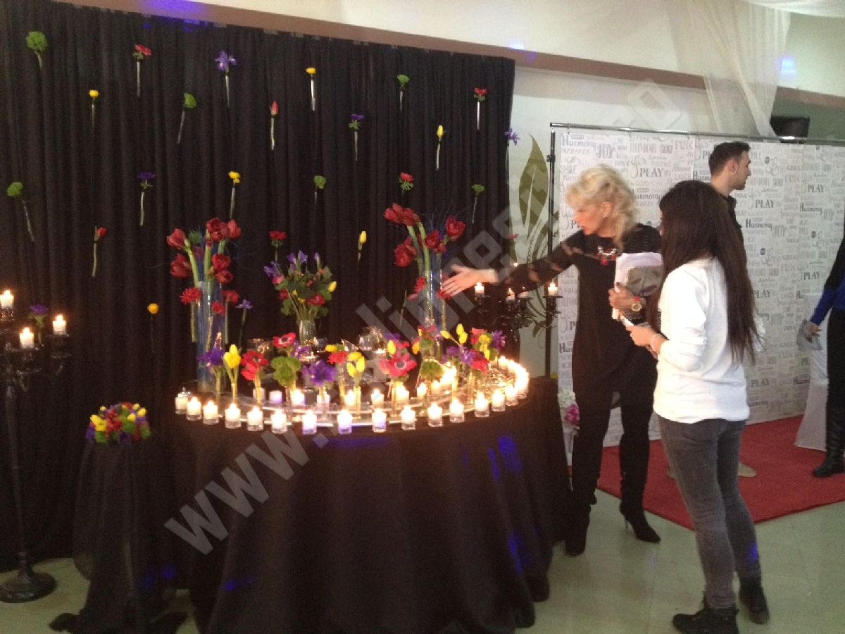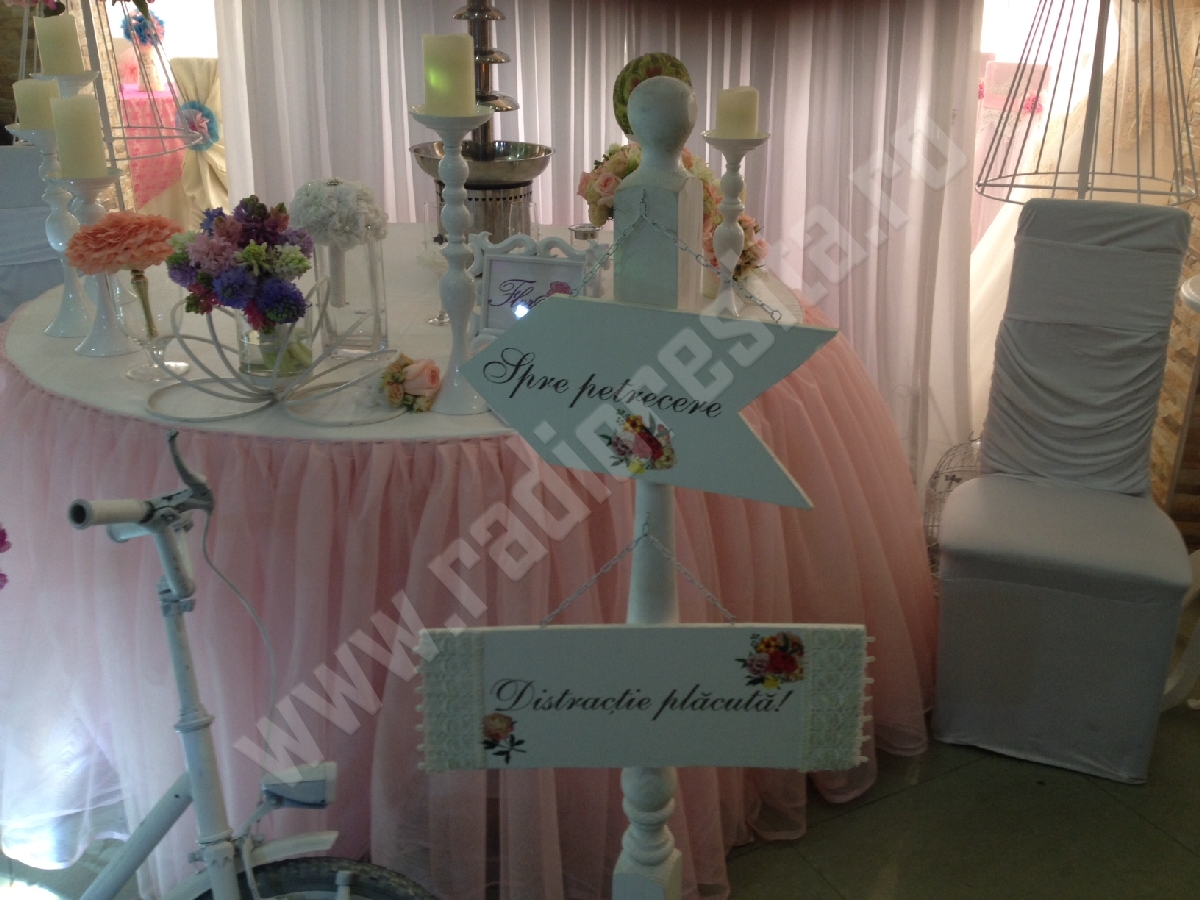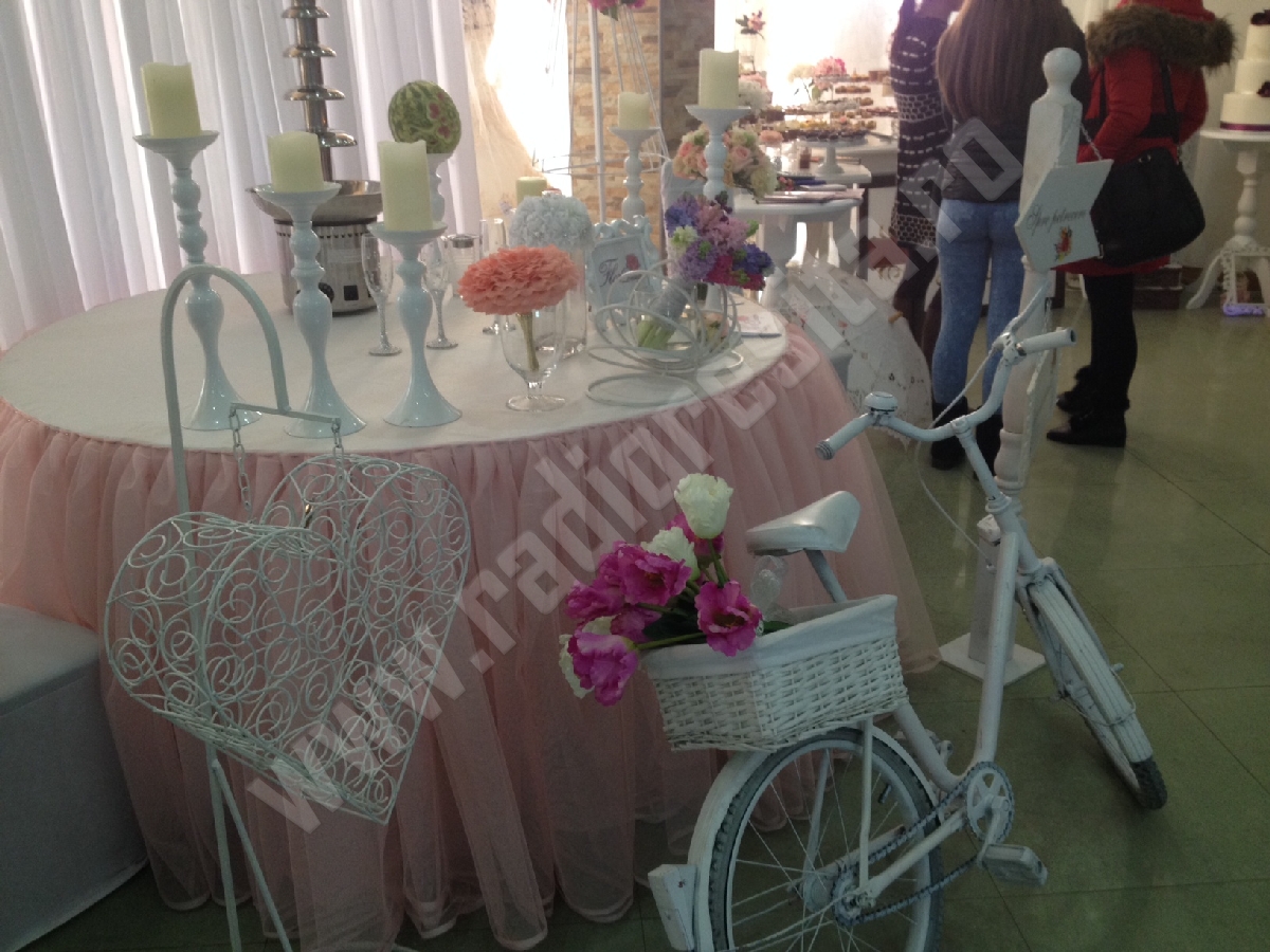 Într-o singură zi, cei interesaţi îşi pot planifica întreaga nuntă. Viitoarele mirese şi-au ales rochia, prăjiturile, florile dar şi decorul. În acest an se poartă rozul quarţ şi albastrul seren, ne-a declarat principalul organizator, Valentina Chivu. In ceea ce priveşte decorul, miresele au avut de unde alege. Cel mai mult a ieşit în evidenţă standul decorat cu mătase şi voal negru, lumânări şi flori colorate aşezate în eprubete. Inedit, dar foarte elegant, acesta a atras toate privirile.