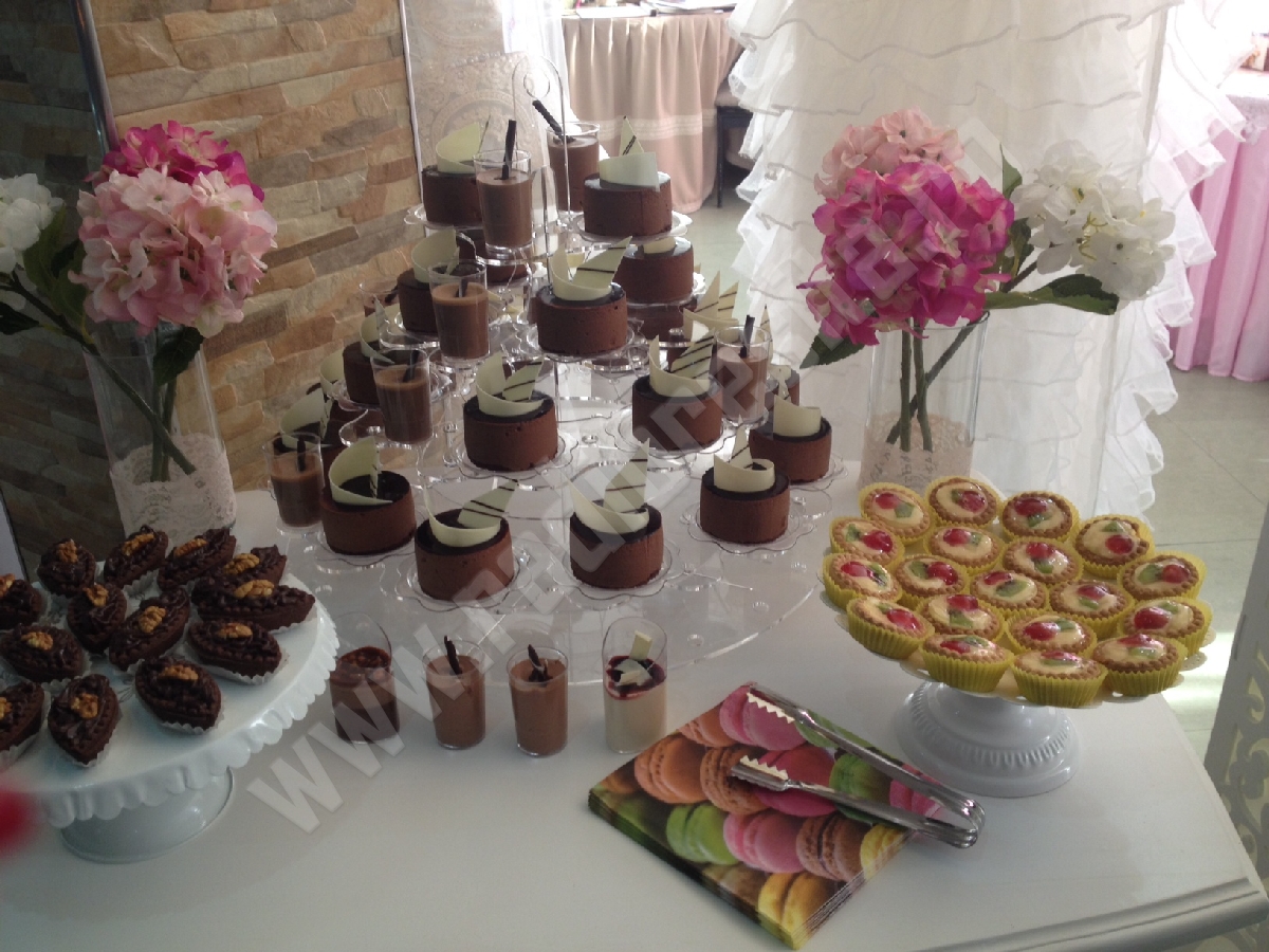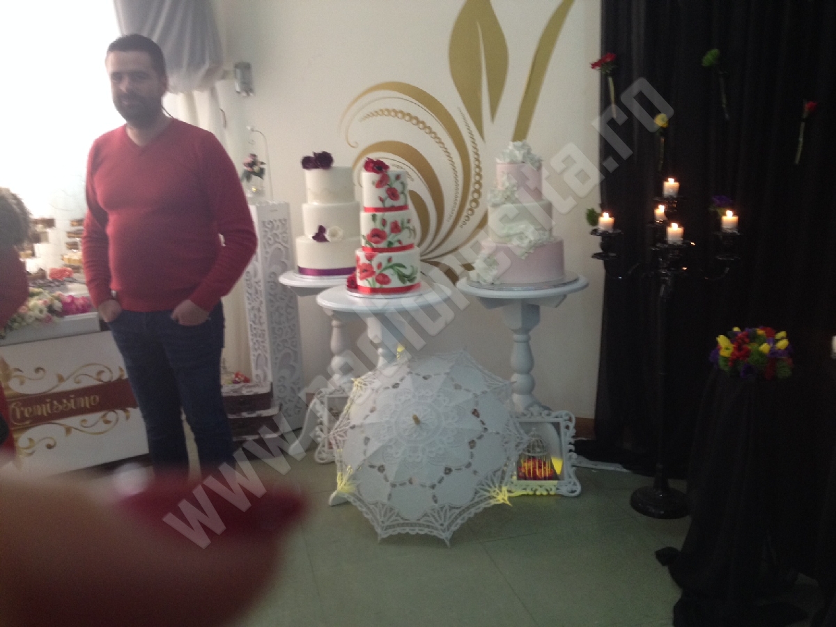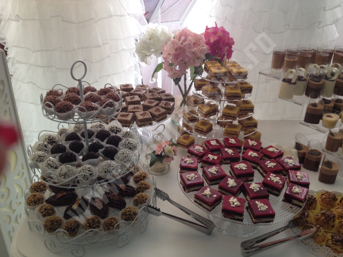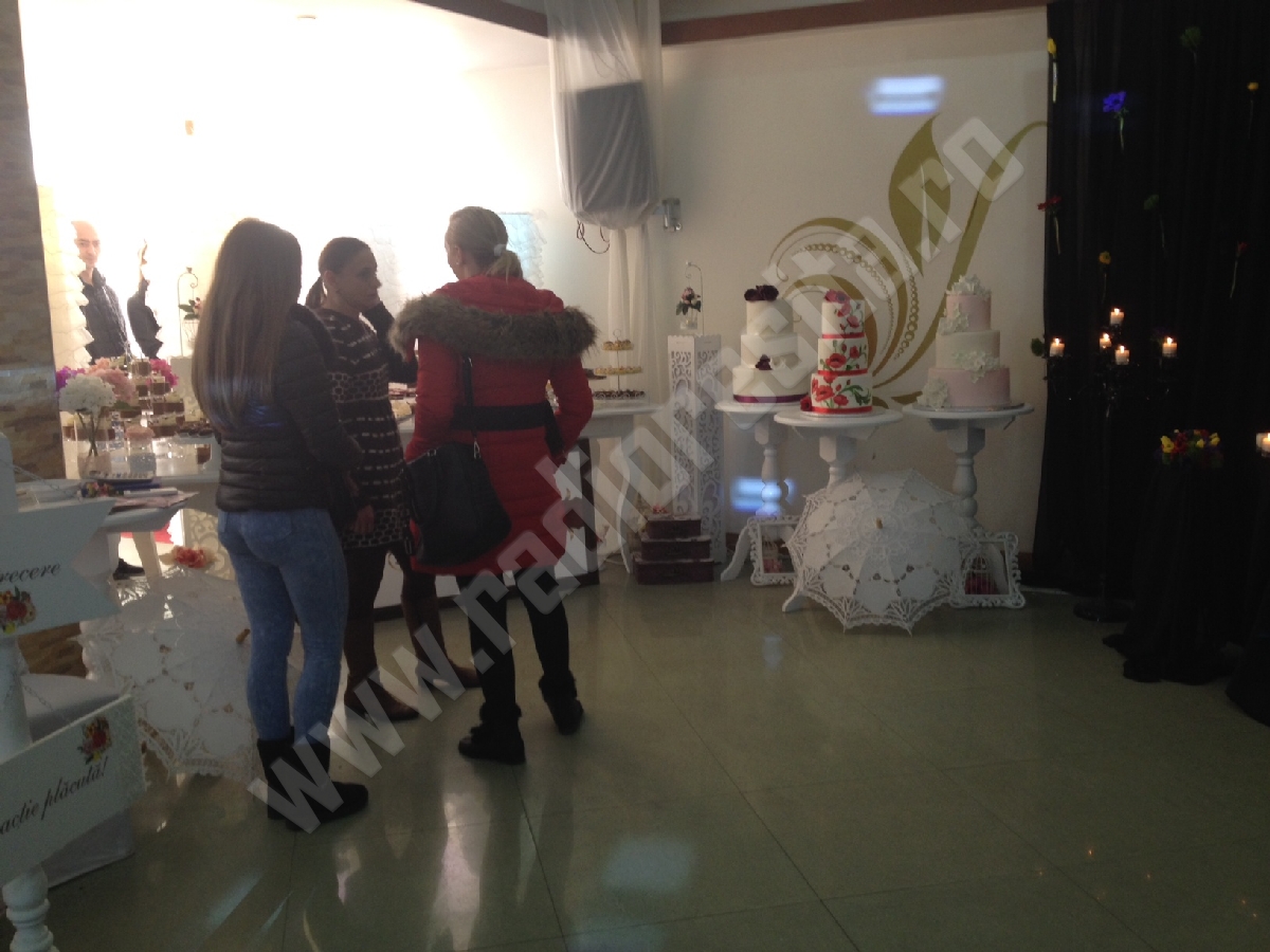 În materie de prăjituri, torturile pictate au fost în centrul atenţiei. Ingredientele folosite sunt 100% naturale, a declarat Mirela, unul dintre cei mai buni cofetari din municipiul Reşiţa. Candy-barul, format din prăjituri cu fructe şi ciocolată, a atras miresele ca un magnet.