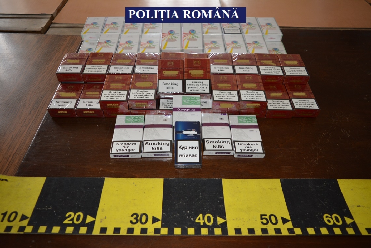 „Într-o societate comercială a fost depistată o tânără de 19 ani, din Șistarovăț, care –într-un sac menajer- deținea în scopul comercializării 1.400 fire țigarete de diferite mărci, netimbrate sau timbrate necorespunzător, susceptibile că ar fi provenit din contrabandă. Într-o altă societate comercială, a fost depistată o femeie de 41 de ani, din Lipova, în timp ce deținea în vederea comercializării, într-un loc greu accesibil, construit în dulapul aflat sub casa de marcat- 1.600 fire țigarete de diferite mărci, netimbrate sau timbrate necorespunzător”.
