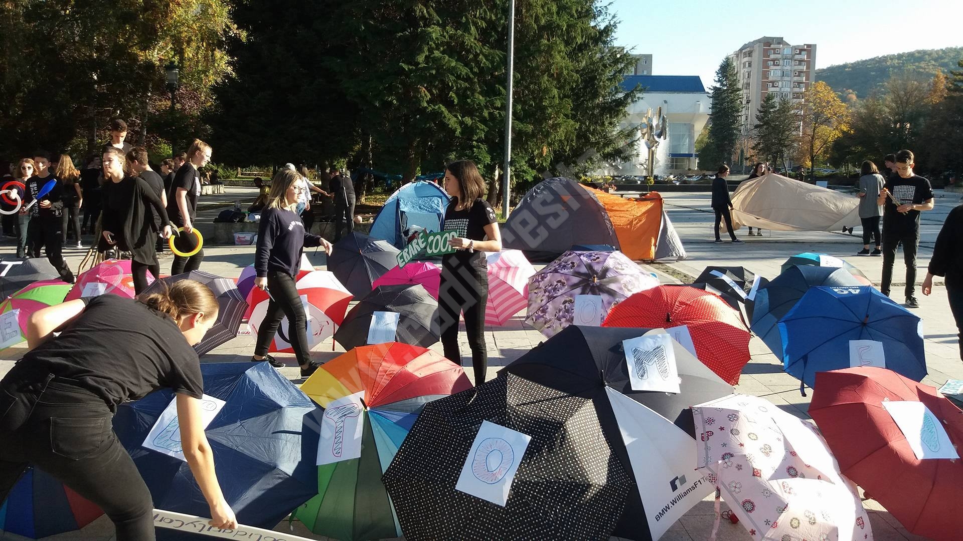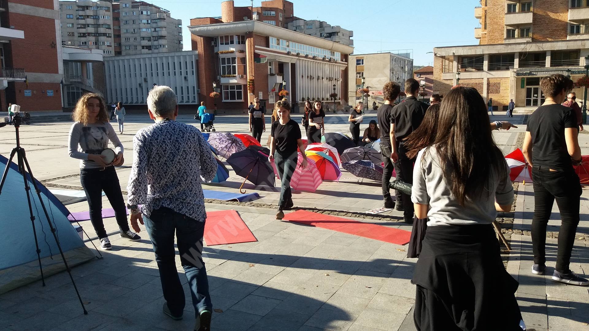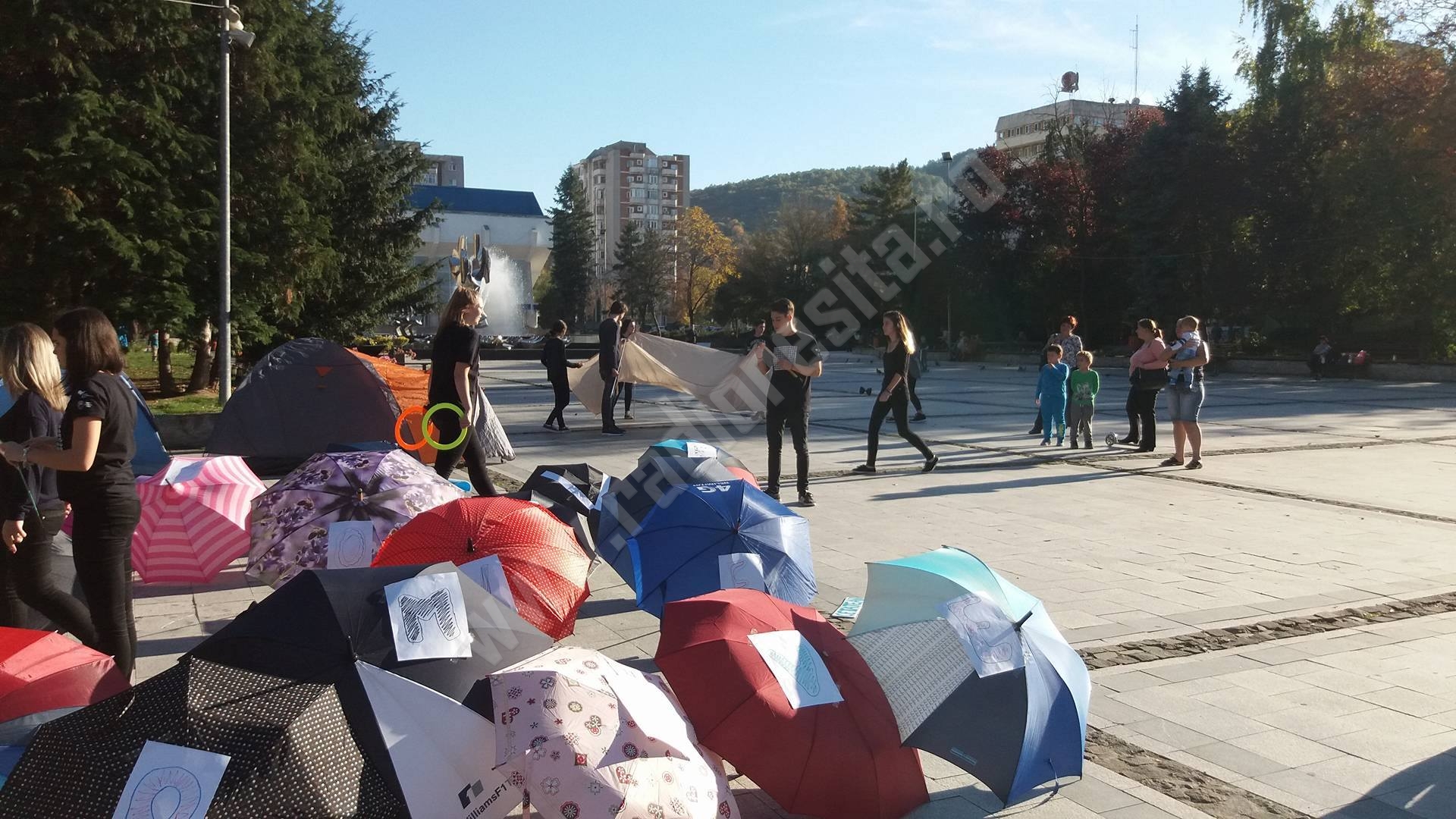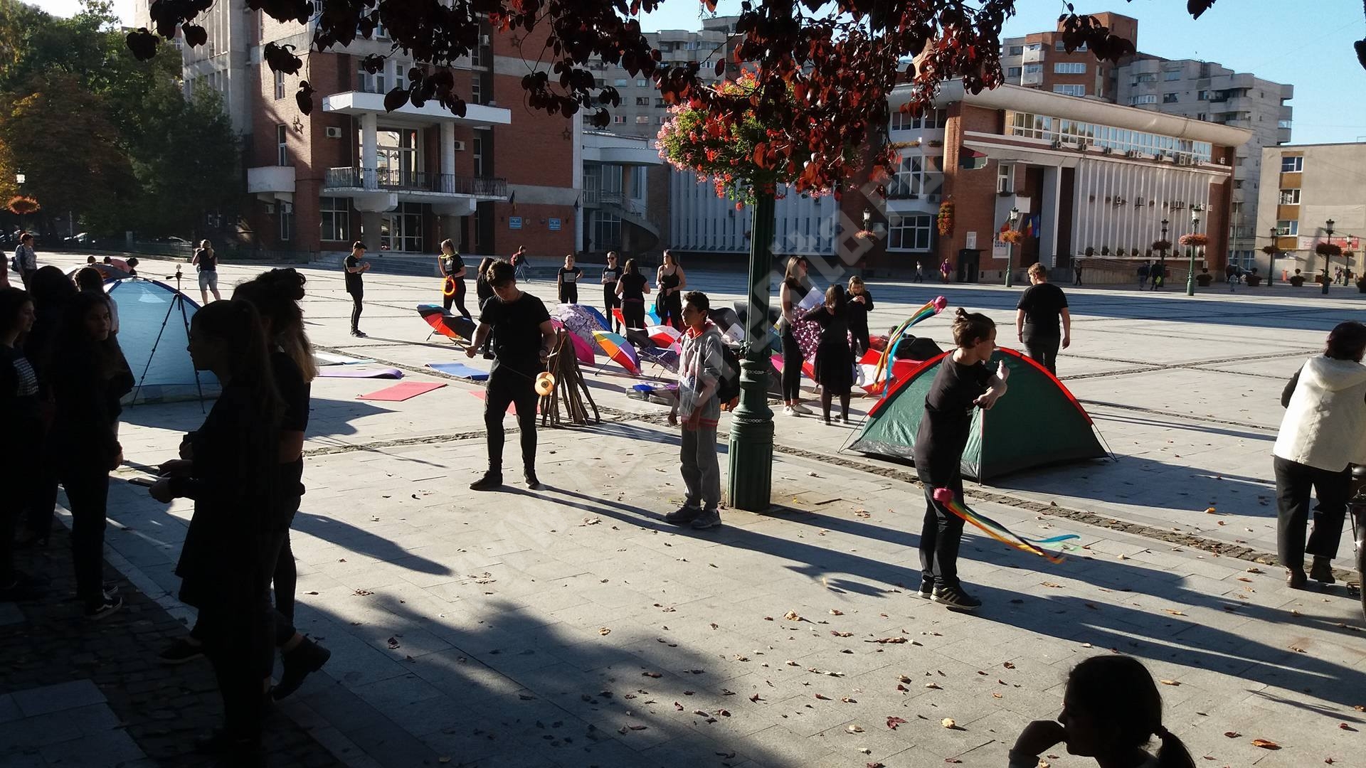 Au fost instalate în centrul orașului corturi, hamace, diferite materiale de camping, umbrele, care s-au aflat acolo între orele 16.30-18.00. De asemenea au avut loc exerciții și mișcări de teatru nonverbal, prin care s-a dorit atragerea atenției cetățenilor, a tinerilor în special, asupra a ceea ce înseamnă “happeningul”.