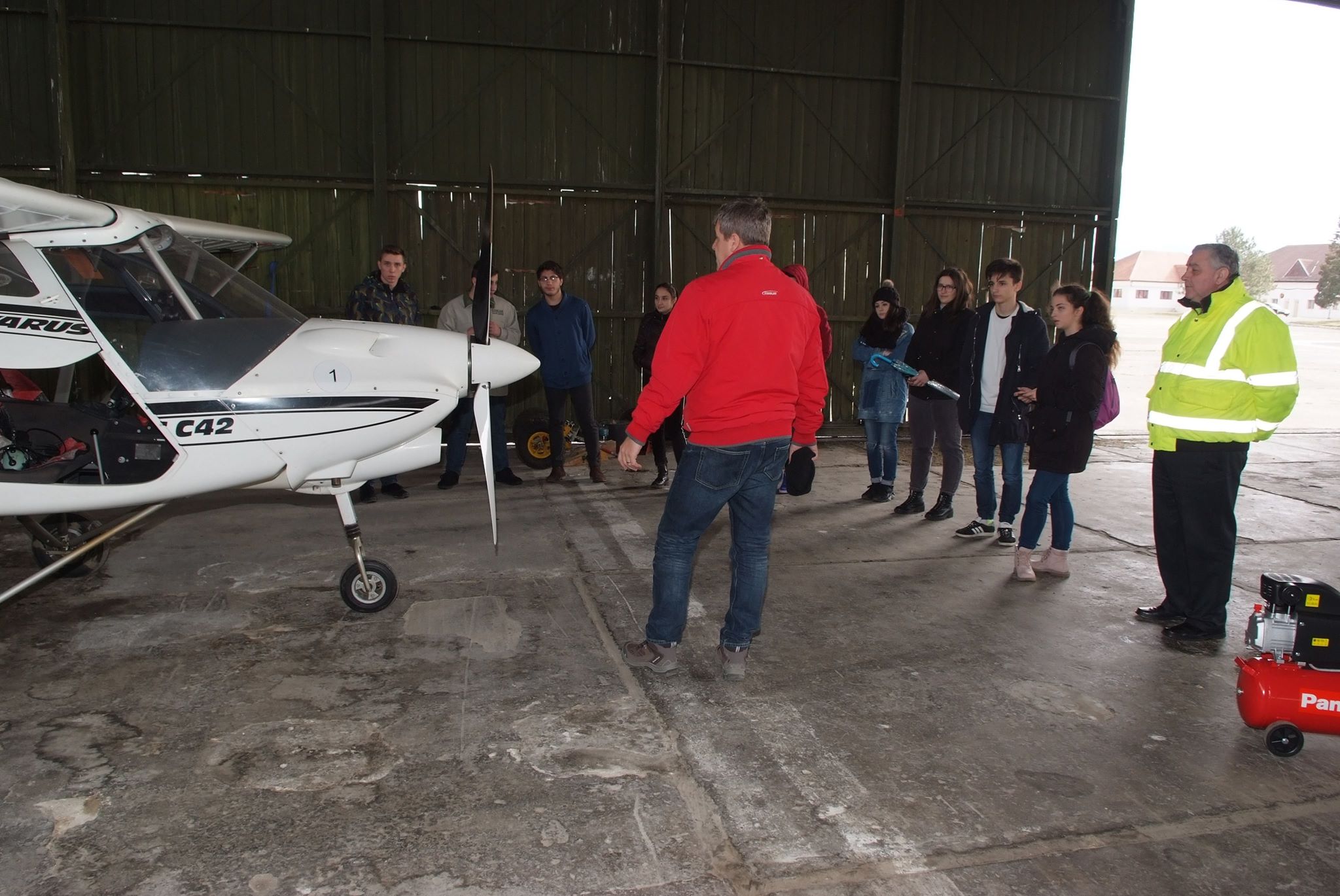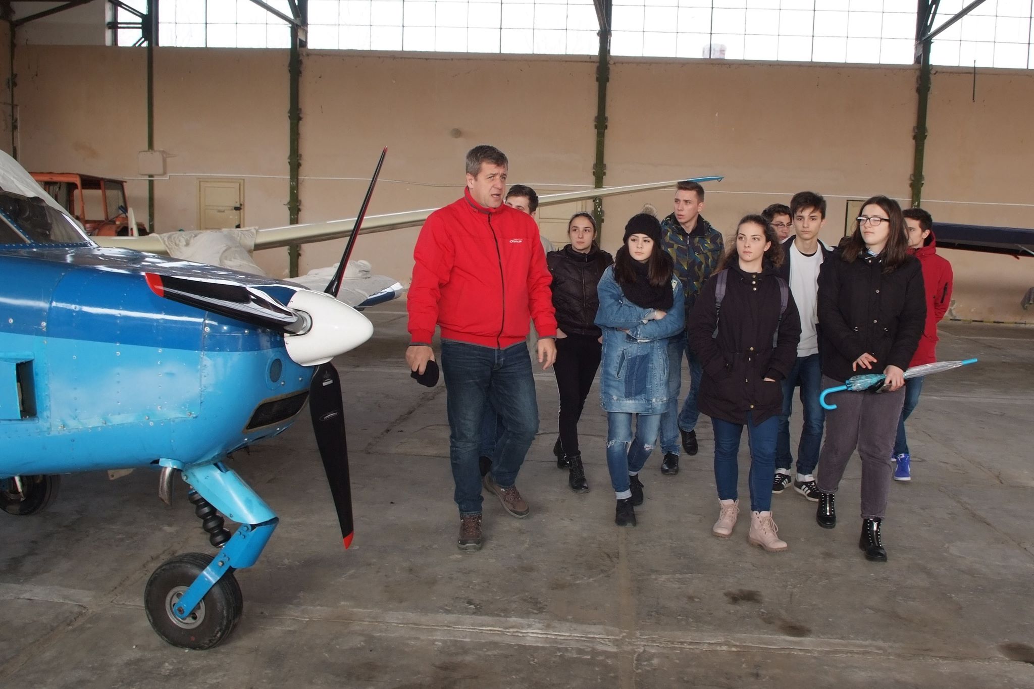 ”Explicăm cum se transportă avionul, cum se scoate din hangar, măsuri de protecție a muncii, deoarece avionul are elemente ascuțite: elicea, capătul de aripă.”