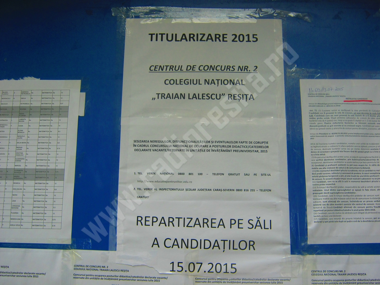 Pentru proba scrisă a examenului de titularizare, în Caraş-Severin au fost organizate 3 centre, toate în Reşiţa. La Liceul „Diaconovici-Tietz” au fost repartizaţi candidaţii pentru posturile de educator, învăţător, consiliere psihopedagogică, învăţământ special şi profesor documentarist.