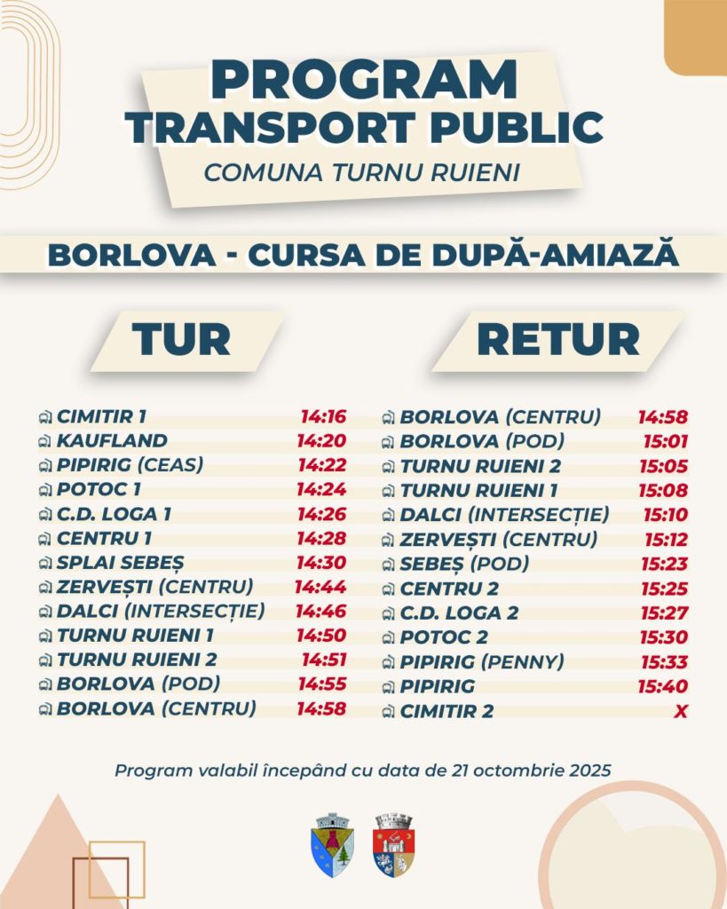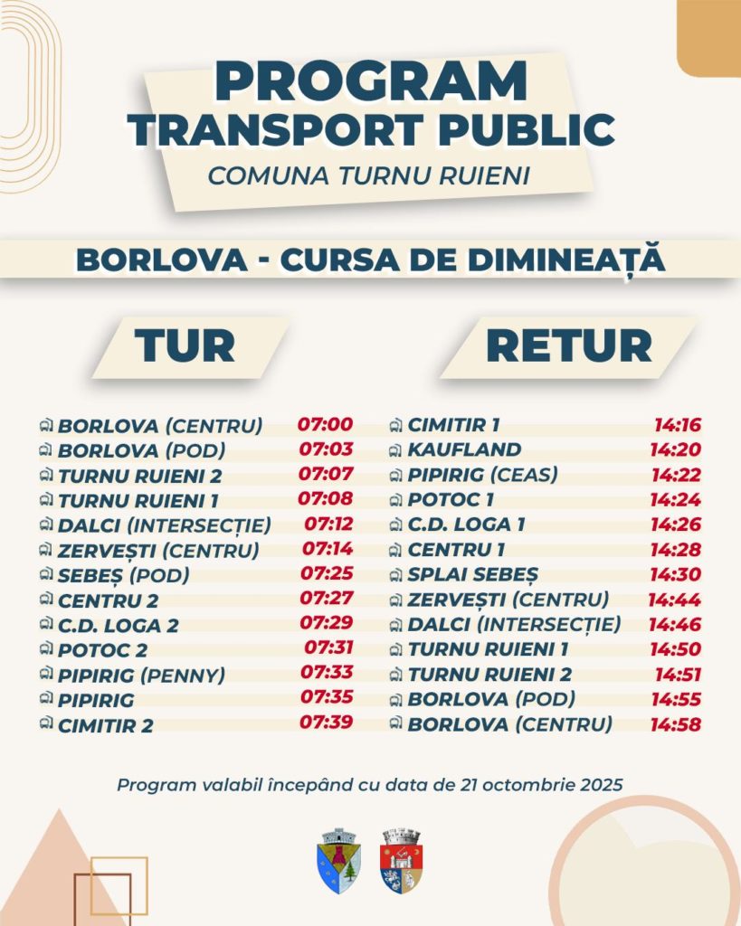 „Mulțumim tuturor partenerilor implicați pentru sprijinul acordat în implementarea acestui serviciu, care contribuie la conectarea localităților comunei cu municipiul Caransebeș și la dezvoltarea durabilă a zonei”, transmit reprezentanții Primăriei Turnu Ruieni.