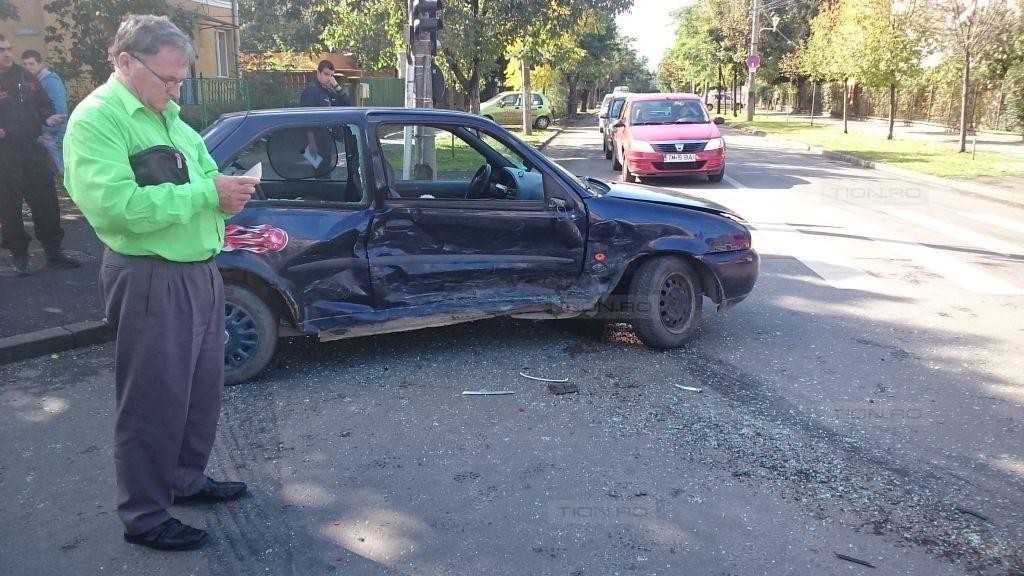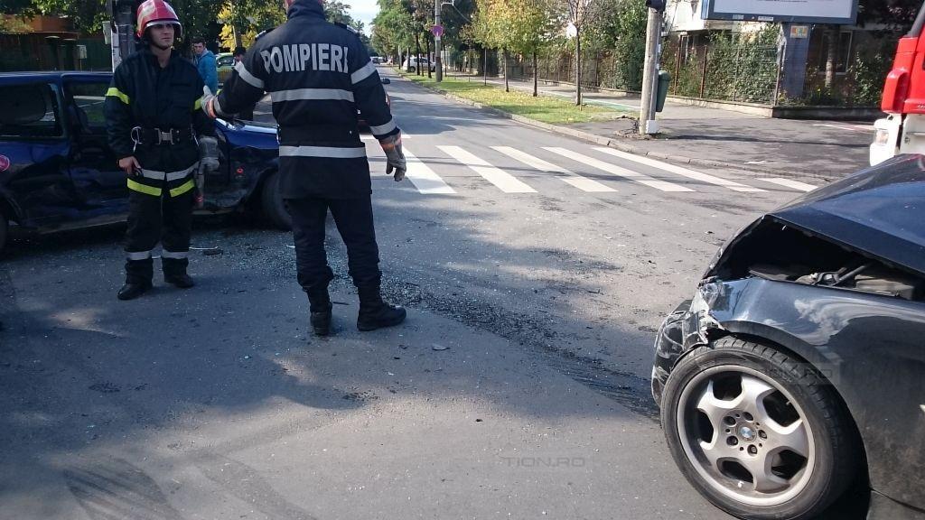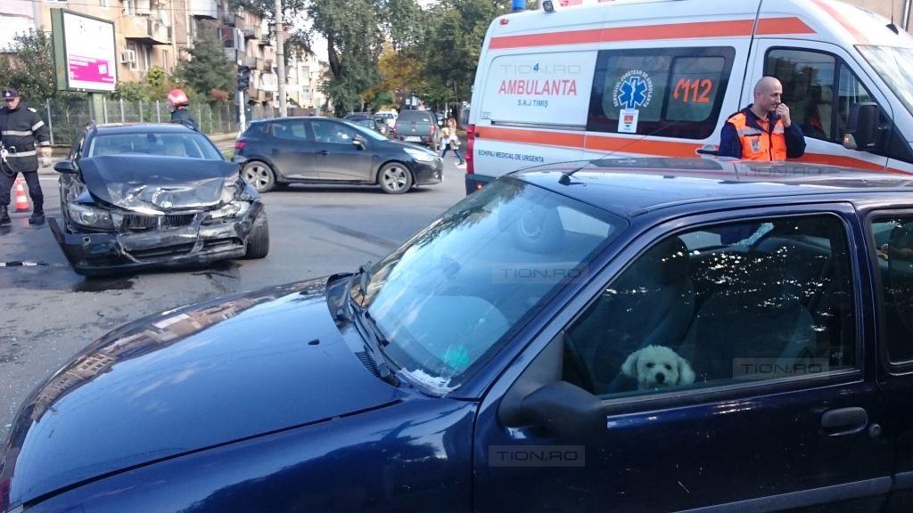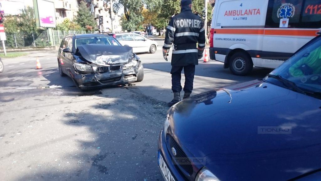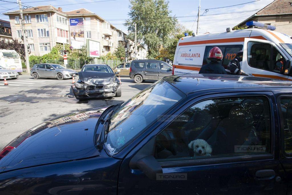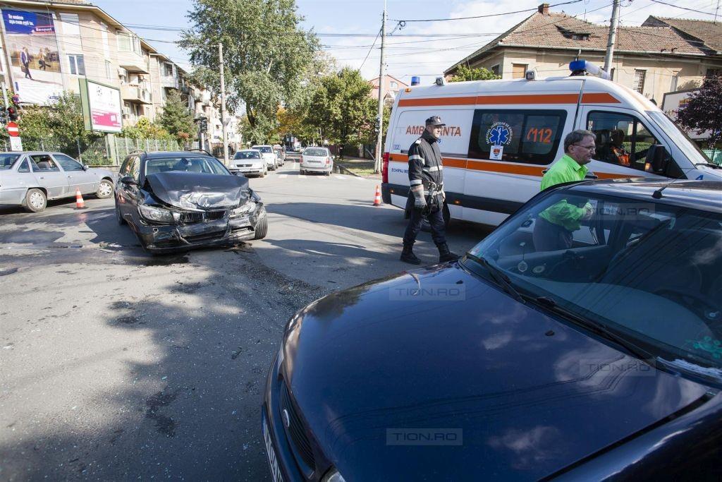 Accident după accident pe străzile Timişoarei. Un nou eveniment rutier a avut loc sâmbătă după-amiază la intersecția străzii Cluj cu bulevardul Eroilor de la Tisa. O femeie de 41 de ani a ajuns la spital după ce mașina în care se afla a fost lovită de un alt autoturism.