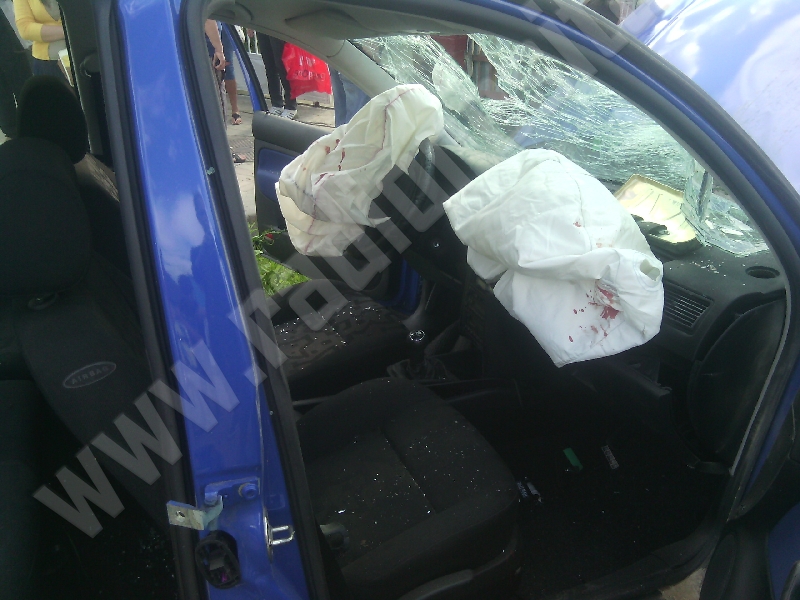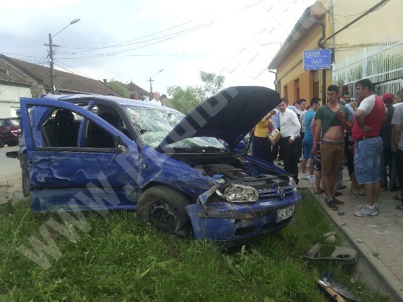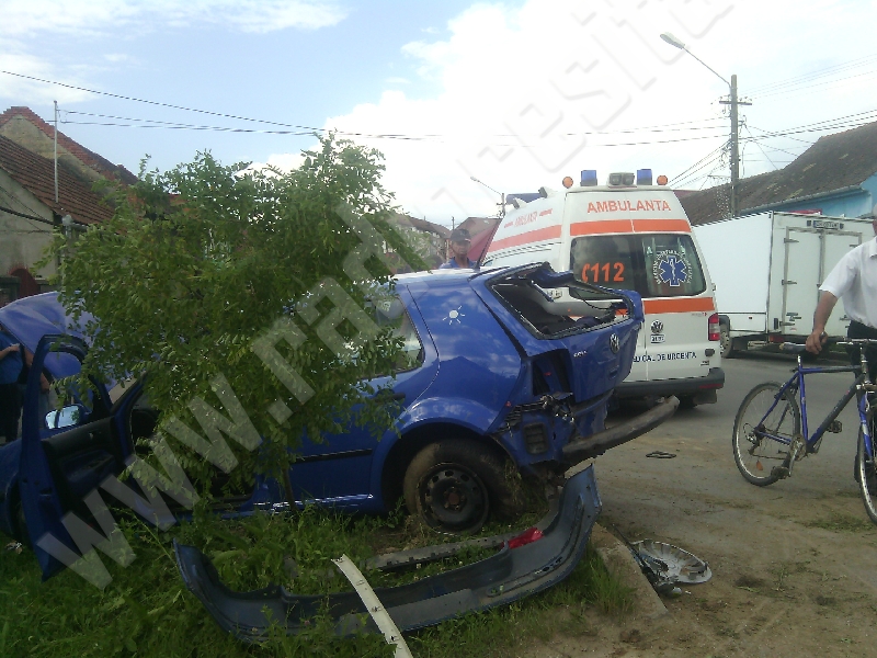Un accident de circulaţie s-a produs astăzi în jurul orei 18. Șoferul autoturismului a pierdut controlul mașinii și a urcat pe trotuar lovind o femeie. Femeia a fost transportată de urgență la spital, la fel și șoferul care a suferit câteva leziuni. Martorii susțin că șoferul ar fi fost băut.