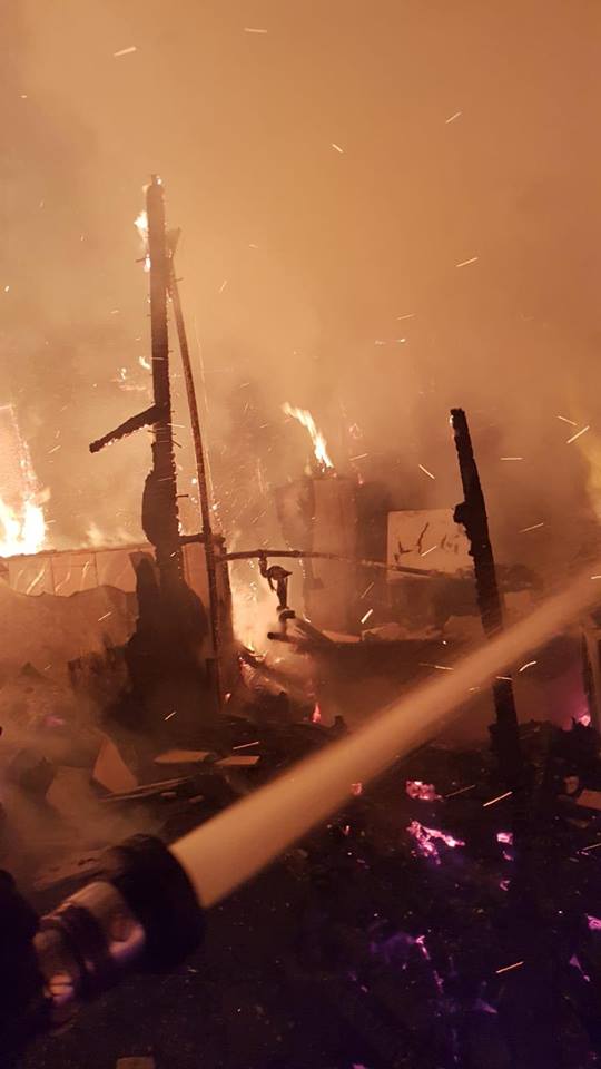 La sosirea forţelor de intervenţie, incendiul se manifesta generalizat şi violent la etajul construcţiei. Vântul puternic, bunurile depozitate şi materialele din care a fost construit etajul (plăci OSB, lemn şi rigips) au favorizat propagarea rapidă a flăcărilor.