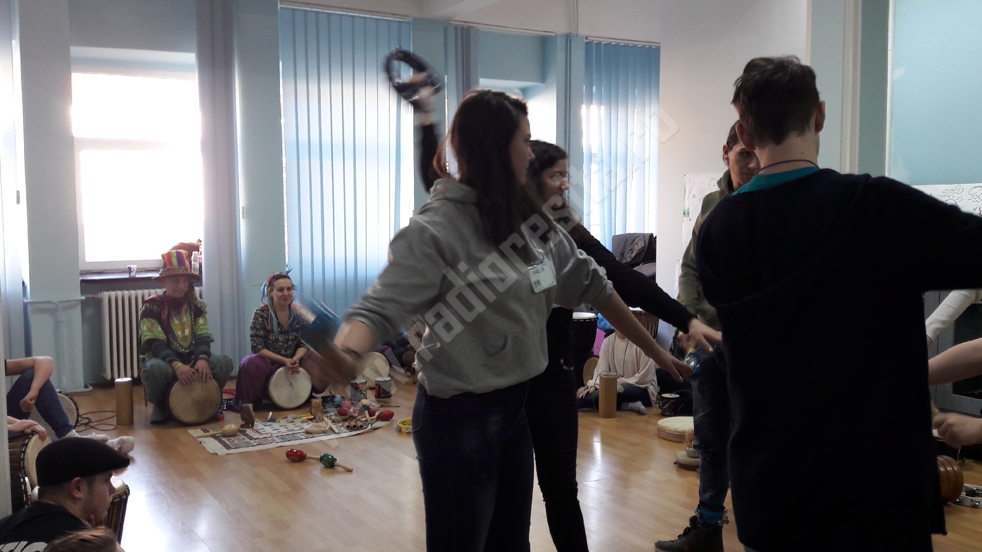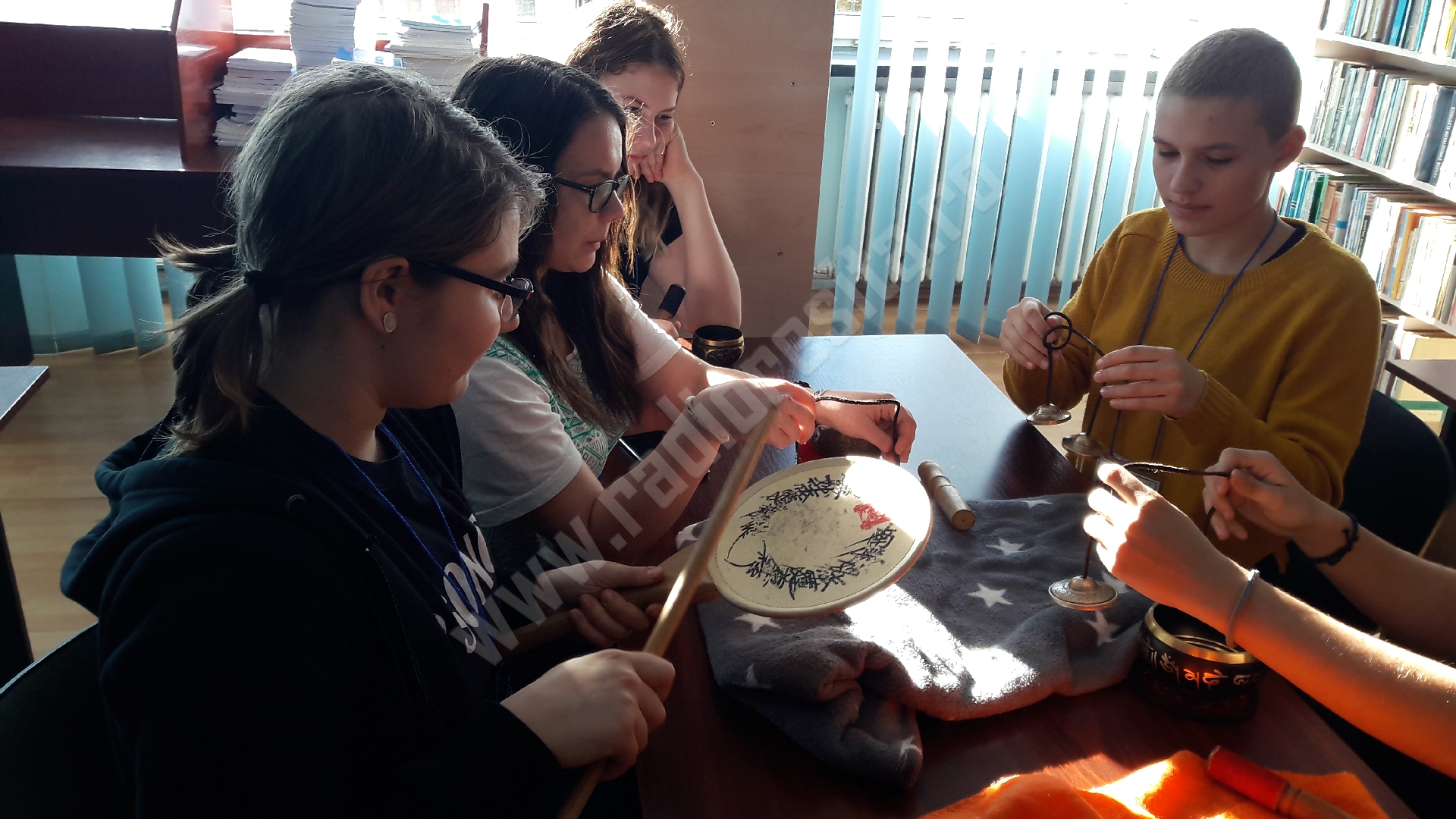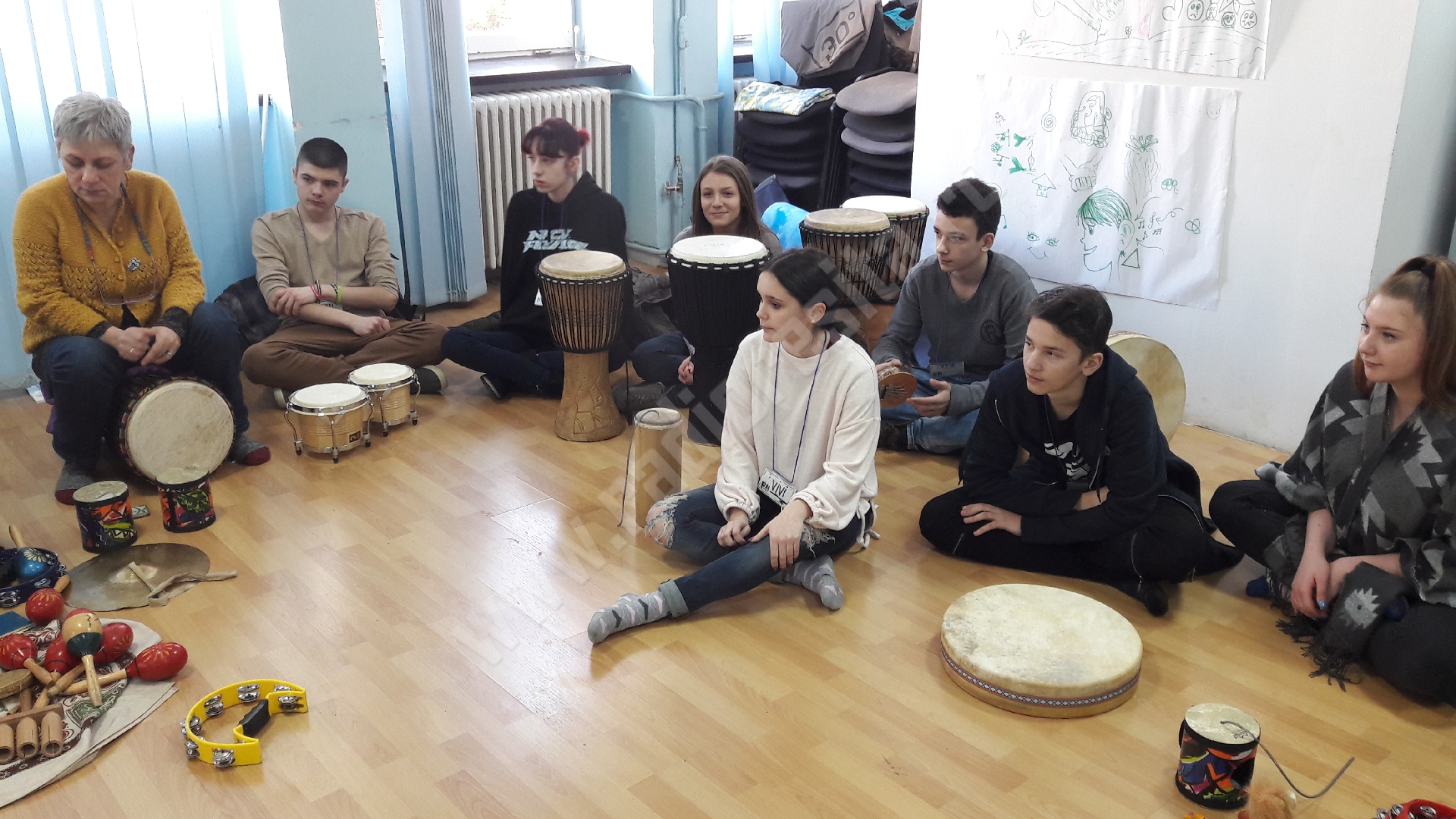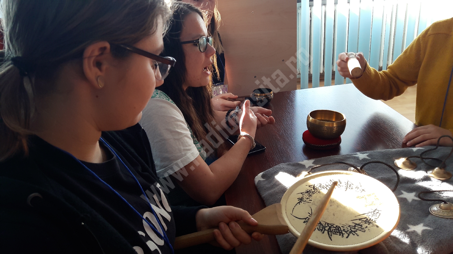 Suntem aici cu instrumente din toate colțurile lumii, de la cele pe care le foloseau amerindienii, siberienii, asiaticii, africanii. Instrumente care au simbolistică și pe care încercăm să le introducem. Copii sunt extaziați de ce descoperă, pentru că, de exemplu, tamburina, despre care știau că este folosită în colinde sau în diverse genuri muzicale, constată că, de fapt, era folosită de strămoșii noștri în ritualuri de purificare. Și, ca metaforă, este ritualul de a decide dacă vrei să mergi cu gândurile rele pe parcursul fiecărei zile sau dacă vrei să te încarci cu energie pozitivă și să fii pozitiv. Cu ajutorul instrumentelor introducem diverse simboluri și metafore. De asemenea, am lucrat și pe emoțiile fundamentale pentru că sunt importante și cu ele școala mai puțin lucrează, așa că noi venim cu partea asta care lipsește în școli.