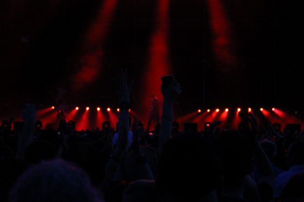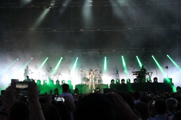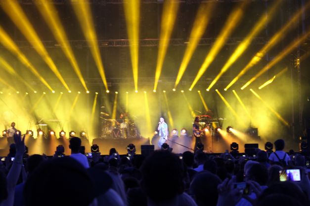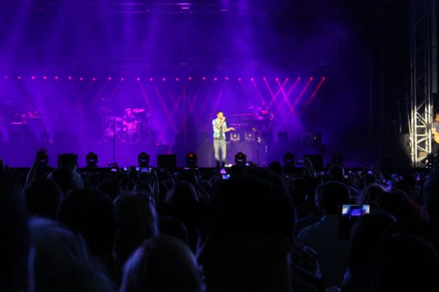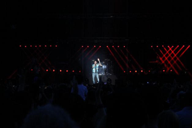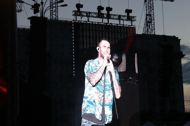 La doar câteva minute după ora 21.00, urlete de lup şi sunete tribale anunţau debutul show-ului. Adam Levine (37 de ani) şi-a făcut apariţia discret şi a început cu „Animals“, piesă de pe cel de-al cincilea album, „V“, al cărui turneu de promovare i-a adus pentru prima dată în România. Concertul a fost marcat de „urletele“ prelungi ale americanului, dar cele mai frumoase momente au fost, fără urmă de îndoială, cele în care scena i-a aparţinut chitaristului James Burgon Valentine. Şi nu au fost deloc puţine. Nici toboşarul Matt Flynn nu s-a lăsat mai prejos. Sub aşteptări însă a fost chiar „piesa de rezistenţă“ a trupei, Adam Levine, a cărui voce nu este deloc la fel de puternică precum cea de la radio, însă acest aspect nu o face mai puţin plăcută. Iar fanilor adevăraţi nici că le-a păsat prea tare de acest mic detaliu şi au fost fericiţi să-i îndeplinească orice dorinţă. Să-l aplaude mai tare pe clăparul PJ Morton? Sigur! Să se dezlănţuie pe „Moves Like Jagger“? Bineînţeles! Să cânte versurile de la „This Love“? Evident! Orice pentru Adam Levine!