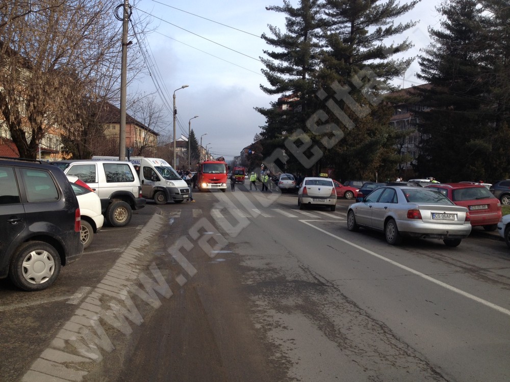 Circulaţia rutieră este blocată la această oră (10.30), pe strada Sportului, chiar în faţa Colegiului Tehnic din Reşiţa, din cauza unui accident rutier, în urma căruia au fost avariate trei autoturisme. O persoană a fost transportată la spital pentru a primi îngrijiri medicale, dar nu este rănită grav. La faţa locului a intervenit şi un echipaj al pompierilor, nefiind însă nevoie de descarcerarea celor trei şoferi implicaţi în eveniment. Cauza probabilă a accidentului este neacordarea de prioritate. Circulaţia va mai fi închisă până când se vor încheia măsurătorile.