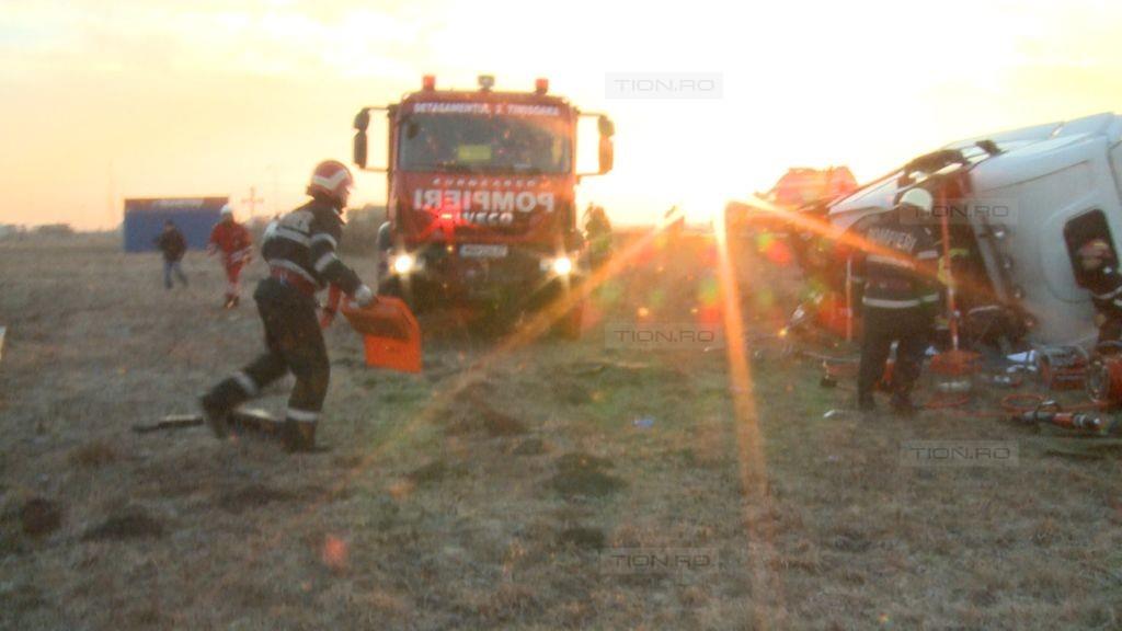 Vinovat de producerea accidentului este un tânăr de 29 de ani din Timişoara, care se îndrepta spre Lugoj la volanului unui autoturism, marca Volvo. La un moment dat a efectuat o depăşire fără să se asigure şi a intrat frontal într-un autotren, condus regulamentar de un bărbat de 42 de ani din Valea Jiului. În urma impactului, maşina a fost aruncată într-un alt autoturism, marca Ford, la volanului căruia se afla un bărbat, în vârstă de 67 de ani, din Remetea Mare, ne-a informat agent principal Mirela Drăghicioiu, purtătorul de cuvânt al IPJ Timiş. Şoferul tir-ului a fost descarcerat la aproximativ două ore de la producerea accidentului, după care a fost transportat la spital.
