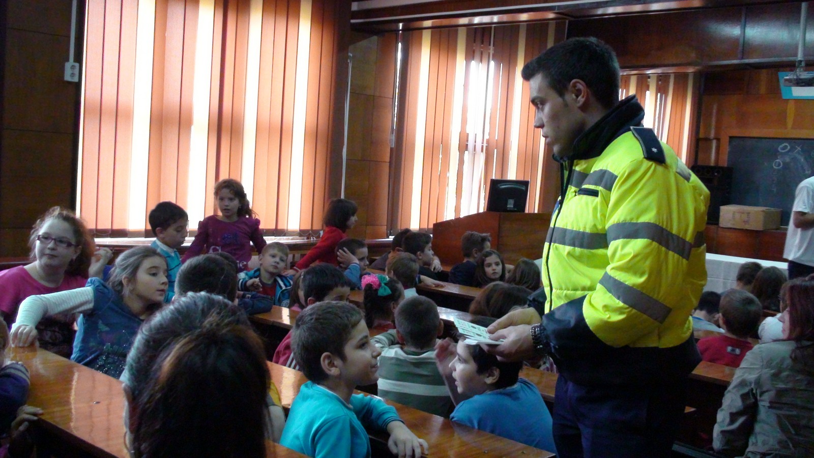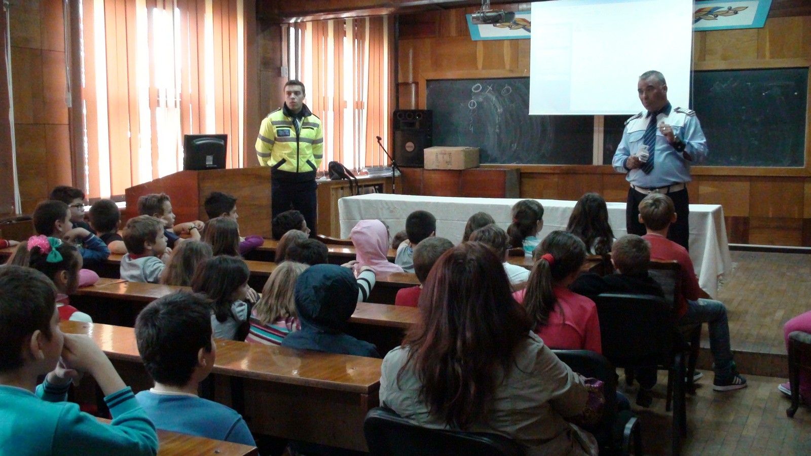 De vizita poliţiştilor au beneficiat elevii din clasele I-VIII cărora le-au fost reamintite regulile de circulaţie ce trebuie respectate pentru a nu deveni victime accidentelor rutiere.