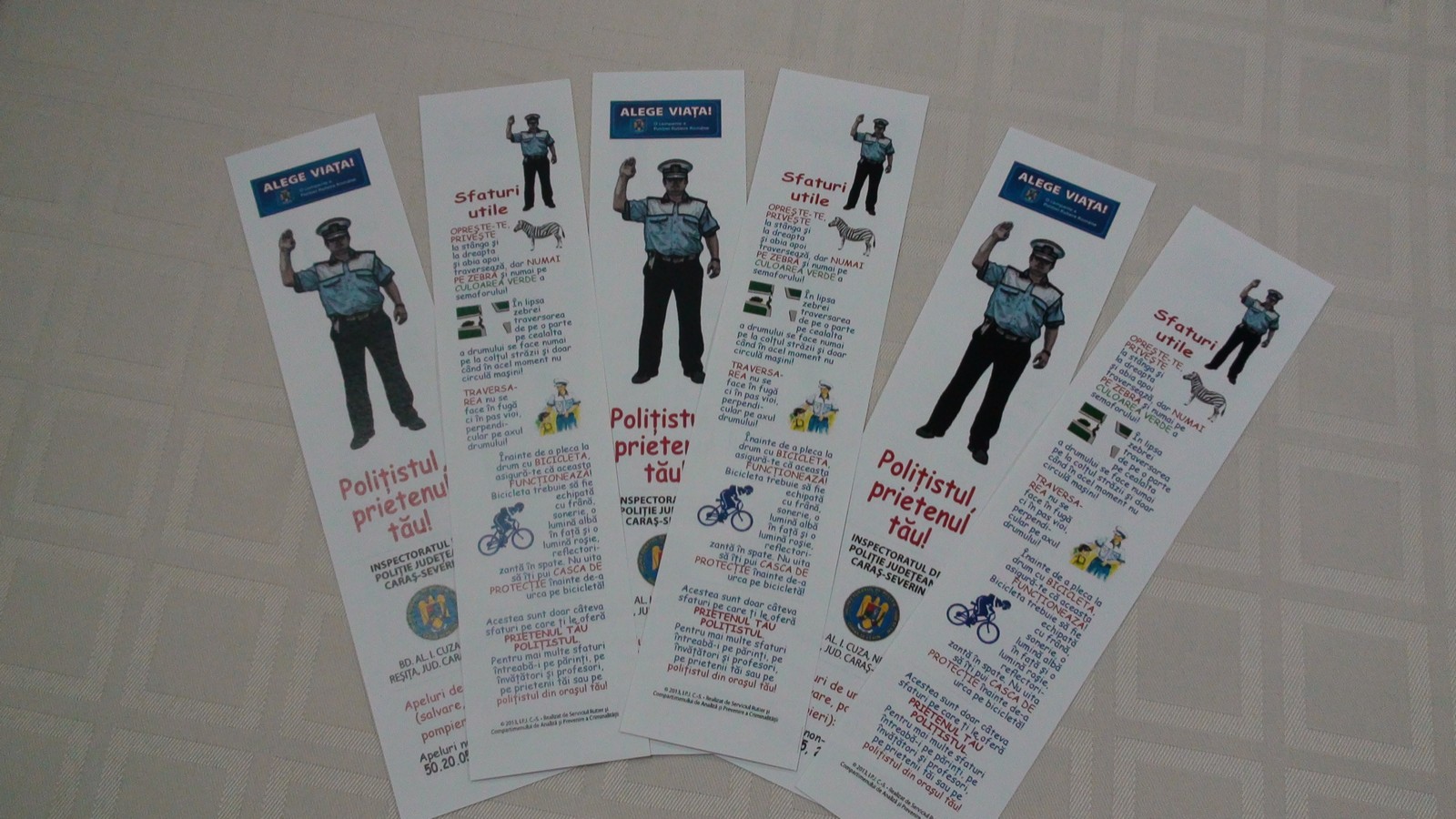 În cadrul acestor activităţi elevilor le-au fost împărţite materiale cu caracter preventiv, semne de carte sau orare pe care se regăsesc sfaturi precum şi principalele semne de circulaţie.