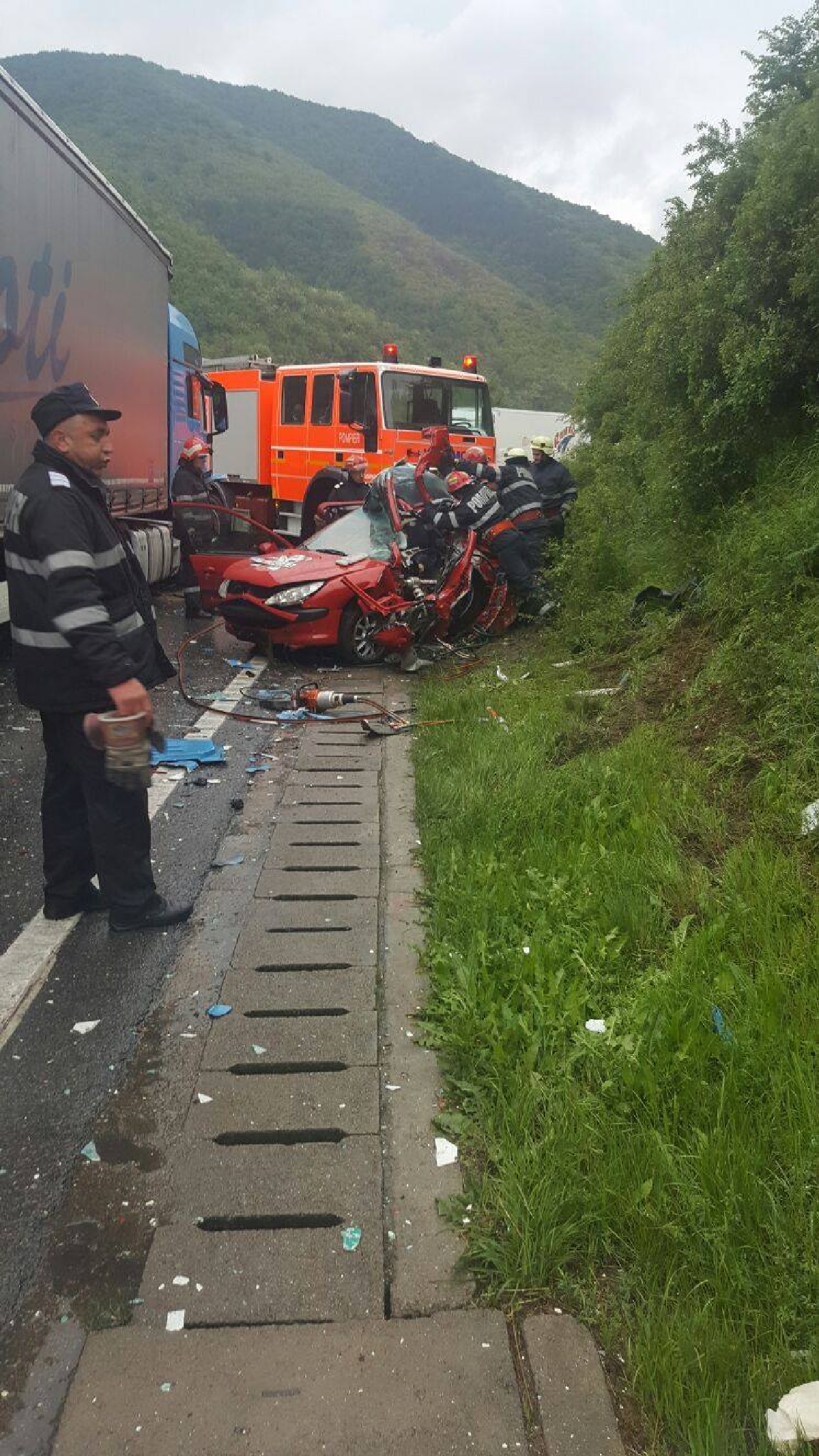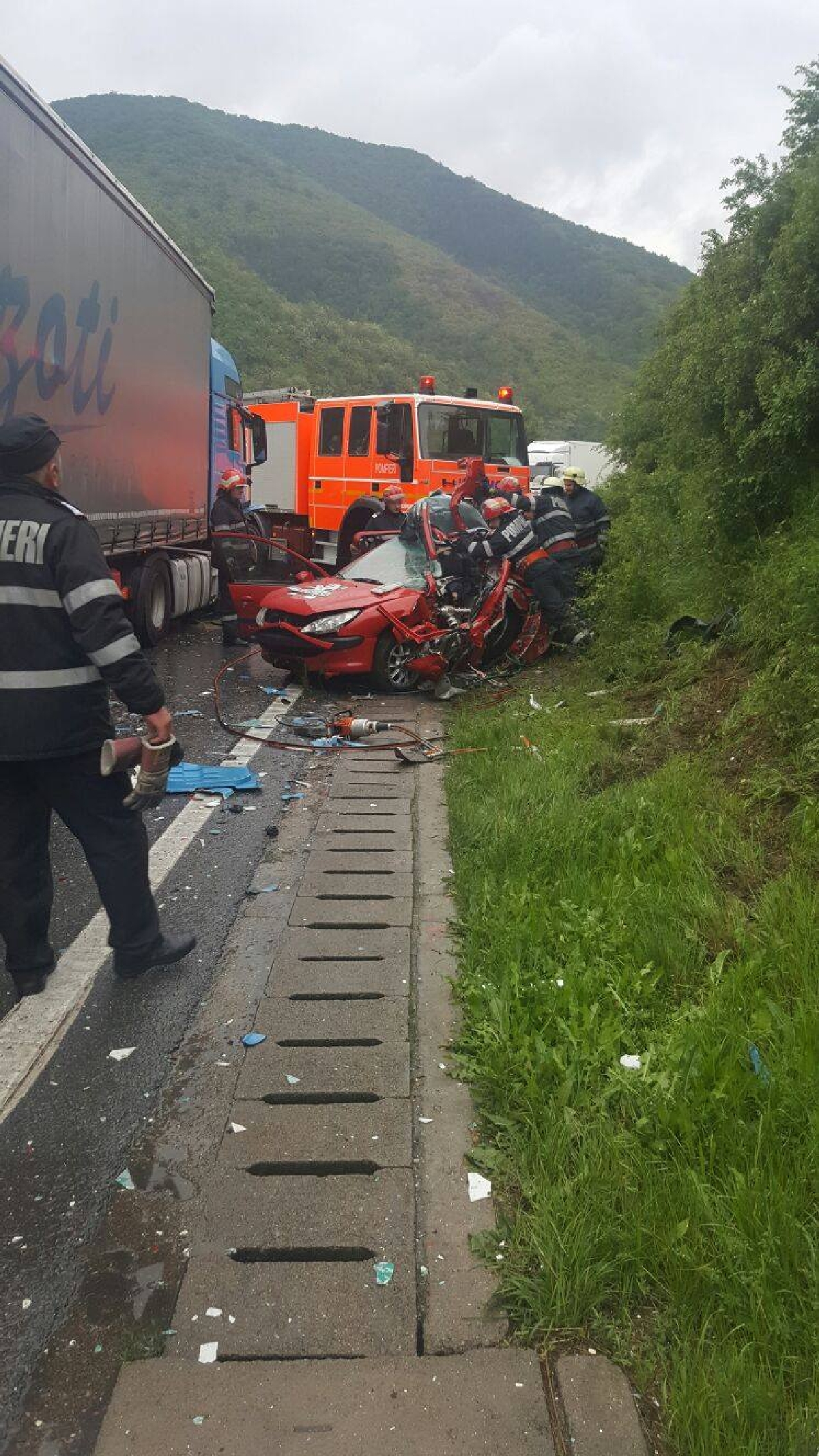 „Ajunși la fața locului, polițiștii stațiunii Băile Herculane au stabilit că un autoturism înmatriculat în județul Timiș s-a deplasat pe DN 6, din direcția Orșova spre Caransebeș iar la km 372+500 m, pe fondul neadaptării vitezei la condițiile de drum, carosabilul fiind umed, a pătruns pe contrasens intrând în coliziune frontală cu un ansamblu de vehicule condus de un bărbat de 59 de ani, din Maramureș, care circula regulamentar din sens opus. În urma producerii accidentului a rezultat decesul conducătorului auto înmatriculat în Timiș și rănirea gravă a altor două persoane, pasagere în autoturism, care au fost transportate la spitalul din Drobeta Turnu Severin pentru îngrijiri medicale”, se arată în comunicatul IPJ Caraş-Severin.
