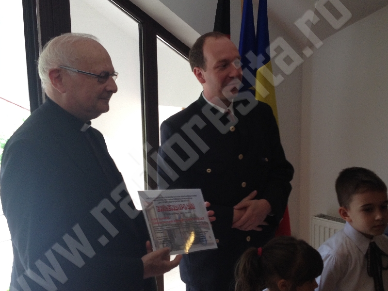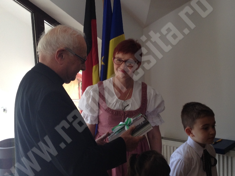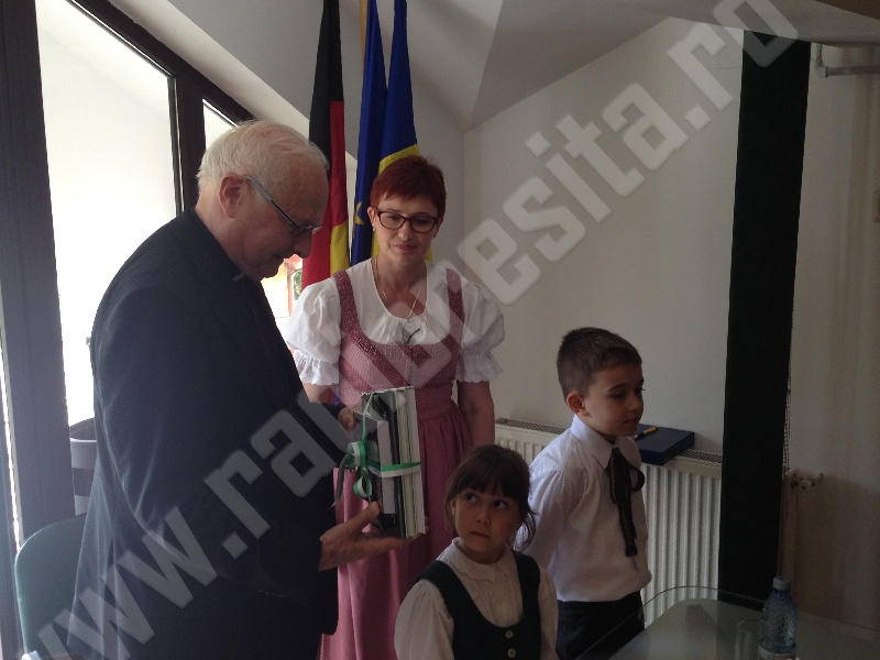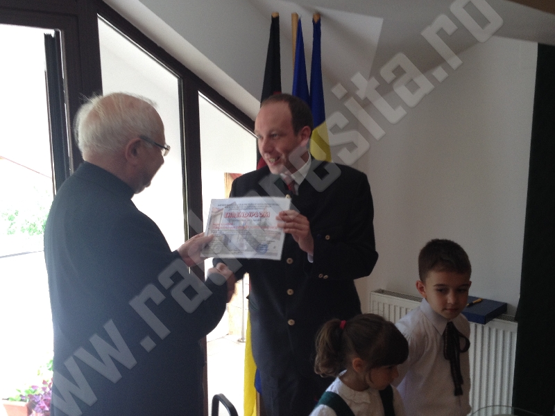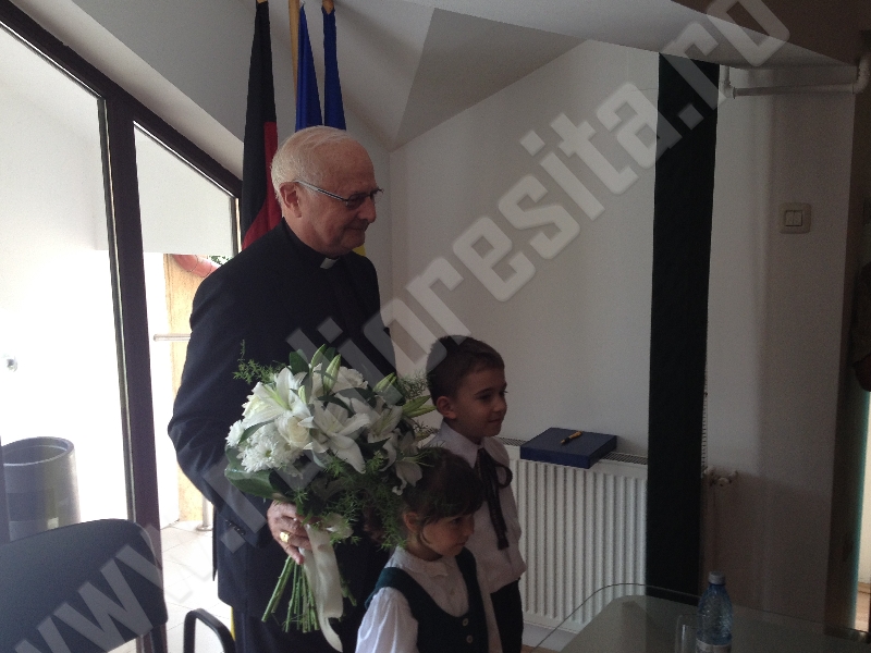 Vicepreşedintele Forumului Democratic al Germanilor din Caraş-Severin, dr. ing. Christian Paul Chioncel a înmânat distinsului oaspete, aflat la prima sa vizită în Banatul de Munte, diploma de onoare a Asociaţiei Germane de Cultură şi Educaţie a Adulţilor Reşiţa.