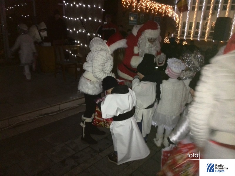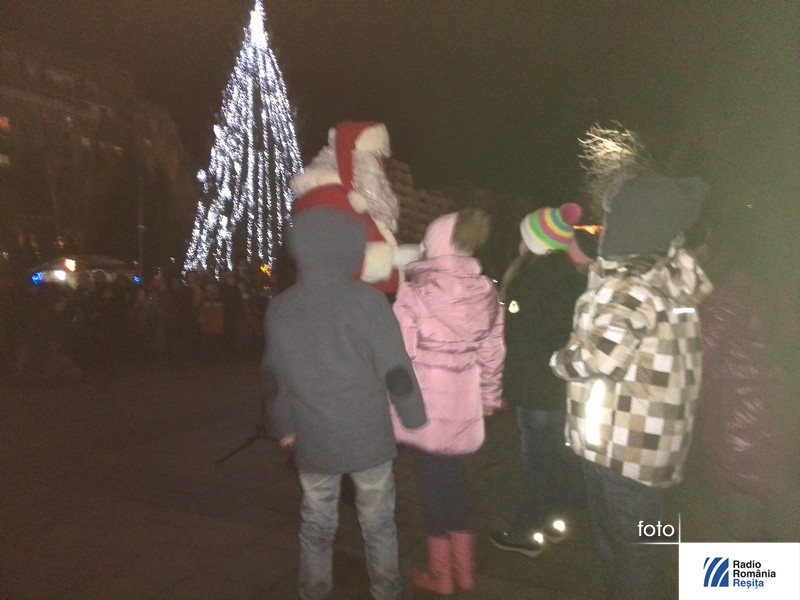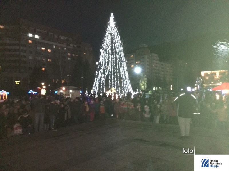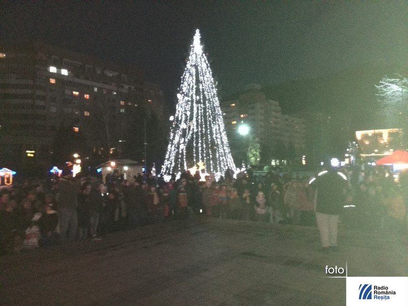 Luminile care împodobesc municipiul Reşiţa cu ocazia sărbătorilor de iarnă au fost aprinse în seara aceasta de către reprezentanţii primăriei, cu ajutorul copiilor care au fost cuminţi.